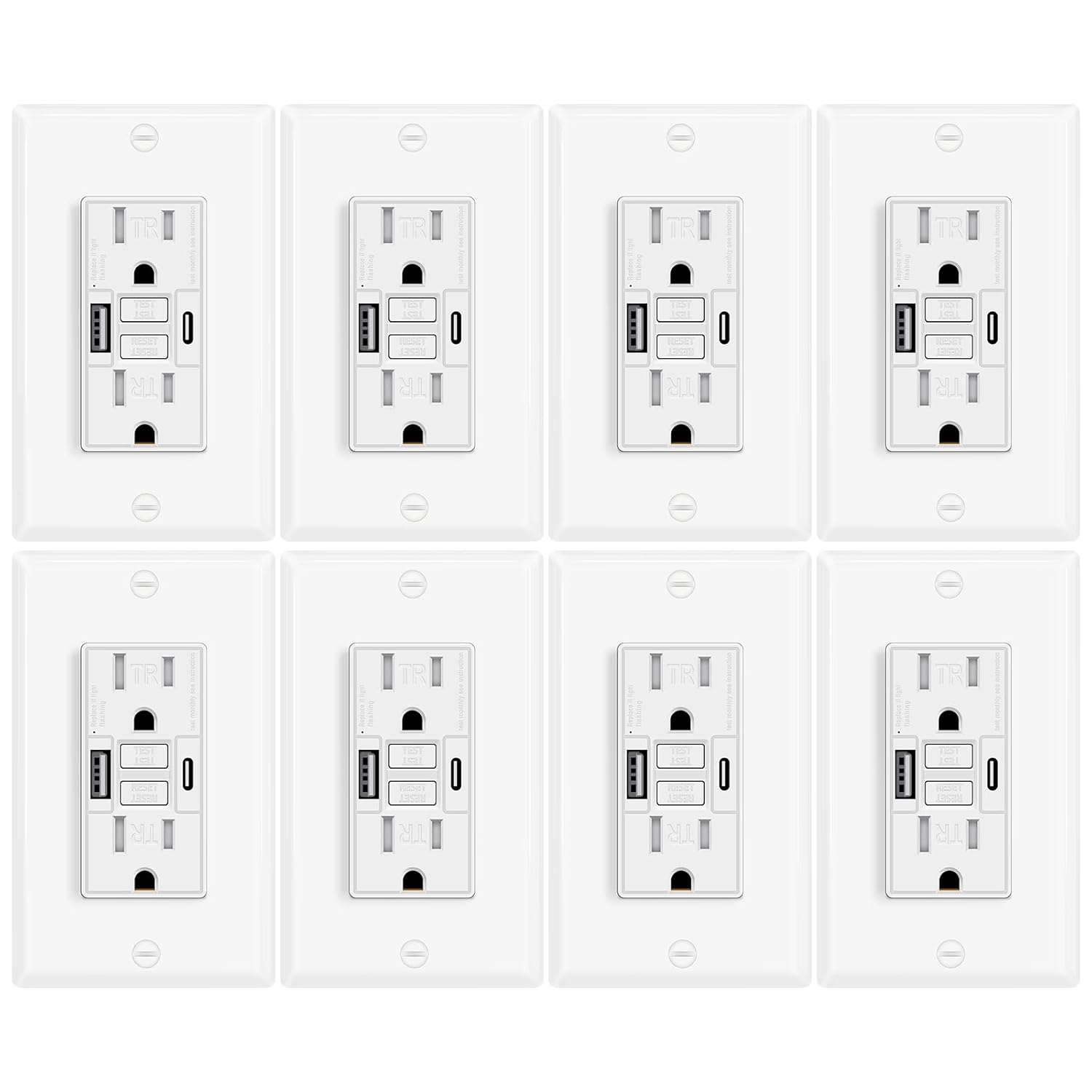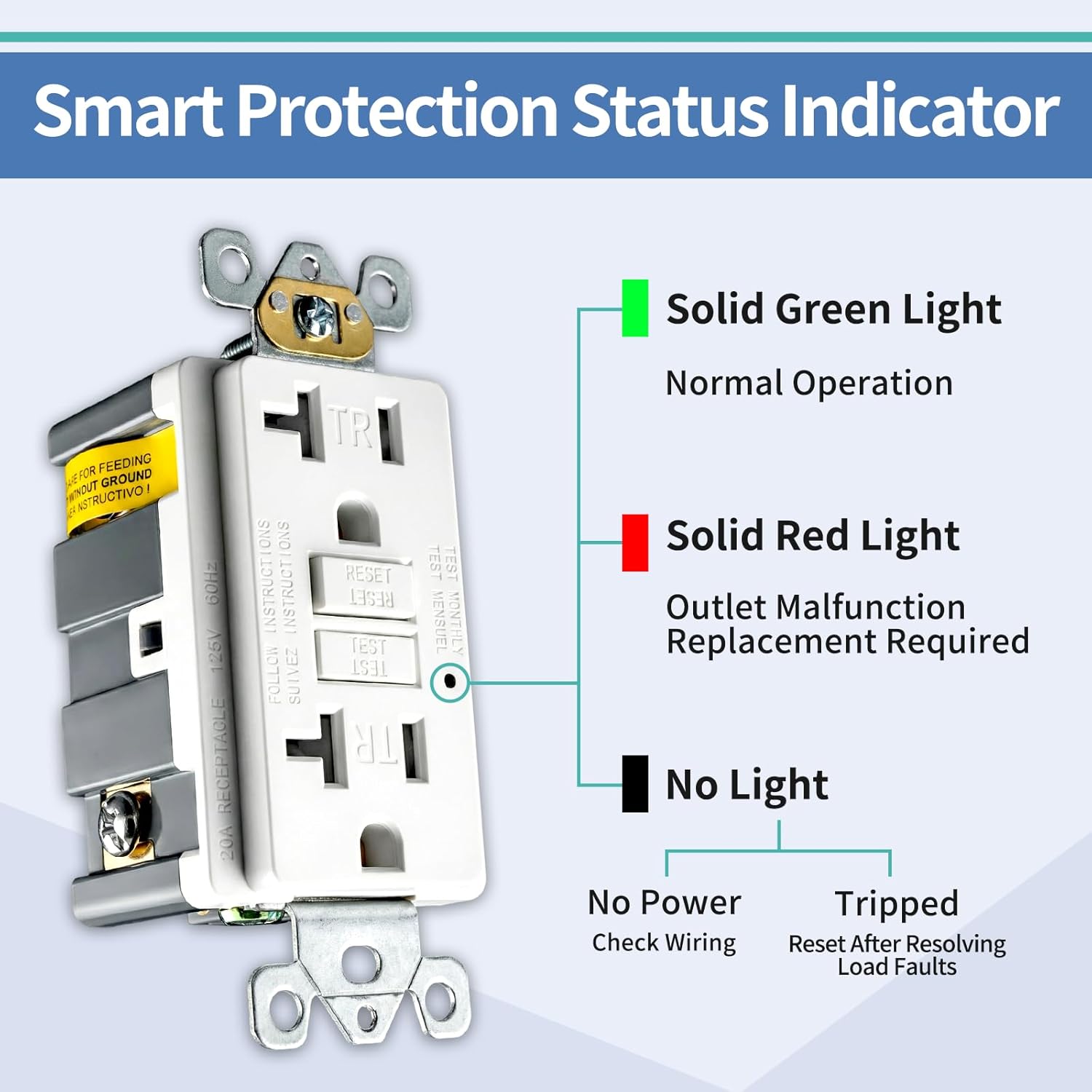 2-in-1 GFCI 20A Outlet with Light Switch: Smart, Safe & Durable Upgrade your home’s safety and convenience with our GFCI Outlet & Light Switch Combo—one sleek device that delivers reliable power, controls lighting effortlessly, and safeguards your family from electrical hazards. Core Safety Features - Tamper-Resistant Design: Effectively blocks foreign object insertion by kids, eliminating the risk of electric shock and enhancing home safety for families. - Smart Chip Protection: Automatically self-tests every 40 seconds; cuts off power in just 0.025 seconds when leakage is detected, providing non-stop protection against ground faults. - LED Status Indicators: Dual LED lights show real-time working status—green indicates normal operation, while red signals a malfunction—offering instant clarity for easy maintenance. Built to Last Crafted from high-quality fire-retardant material, this combo device boasts exceptional durability and can withstand over 5,000 plug-in cycles. It’s perfectly suited for high-traffic areas like busy kitchens, humid bathrooms, and exposed outdoor spaces. 2-in-1 Convenience - Space-Saving Integration: Combines a GFCI outlet and light switch in one compact panel, reducing installation space and simplifying home renovation or upgrade projects. - Multi-Scene Application: Ideal for bathrooms (powers razors while controlling mirror lights) and kitchens (supports small appliances while managing under-cabinet lighting). - Compliant with Standards: Meets U.S. electrical standards, making it your reliable choice for safe, efficient, and hassle-free home power management.