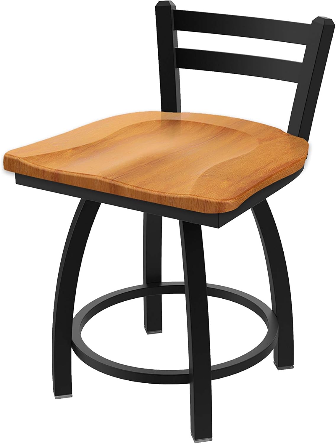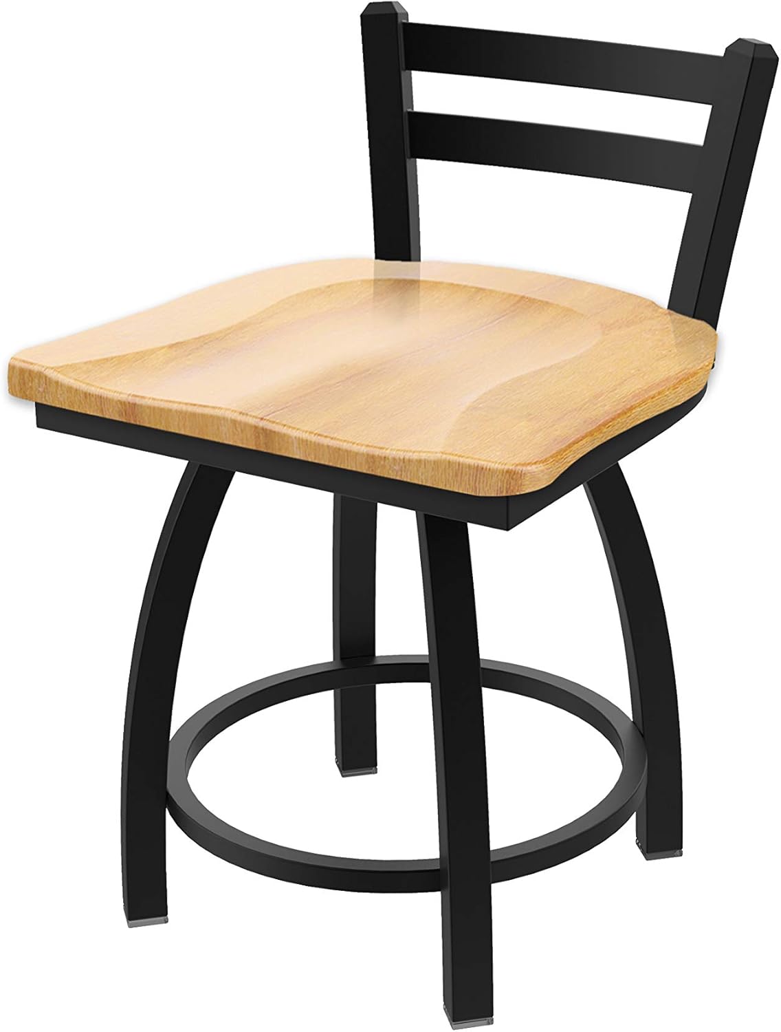 Customize your very own vanity stool/chair with the help of the Holland Bar Stool Co. This Black Wrinkle Jackie Low Back chair height stool with a swivel has a contemporary design and provides just enough back support while being able to tuck under your table or counter. The frame is made from commercial quality 16 gauge, 1 3/4 inch tube steel with solid mig welded joints to guarantee strength and durability. The powder coated finish resists chips and scratches and ensures a long-lasting, rich appearance. The wood seats are 1 3/4 inch solid hardwood (oak or maple) and are dished for amazing posterior comfort, making sitting for minutes or hours a pleasure. The cushion seats are of the highest quality as well, utilizing a breathable, commercial grade vinyl or fabric. At the heart of the cushion is 2 1/2 inches of highly-dense, US made foam that provides maximum support and will not breakdown in a couple years. You won't find a higher quality stool on the market. If you are going to finish your counter, dining, desk, or vanity area - do it right, with a stool from the Holland Bar Stool Co. ** 5 year residential structural frame warranty ** Lifetime residential warranty 52 ball bearing swivel**Made In USA**