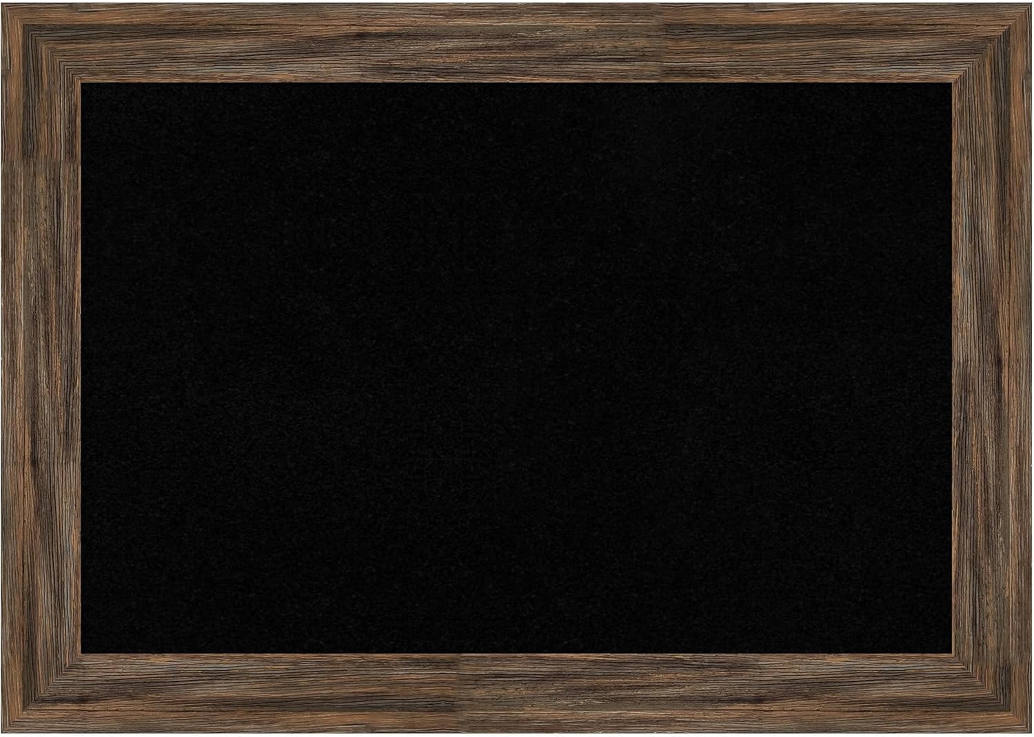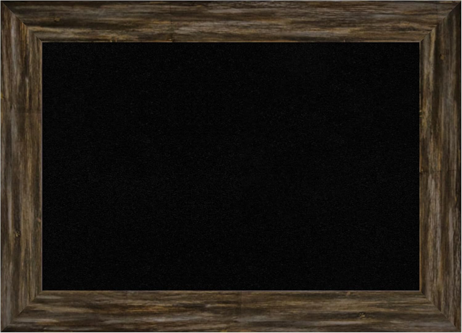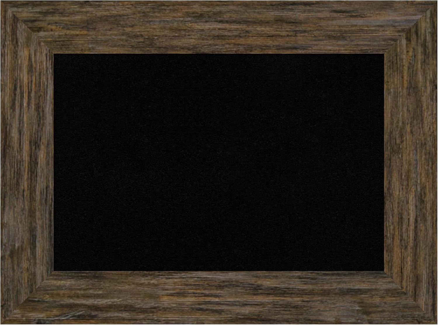 PRODUCT: Framed Cork Board; FRAME: Whiskey Brown Rustic; FRAME FINISH: Distressed; FRAME COLOR: Brown; CORK COLOR: Black; OUTER SIZE: 20 in. x 14 in. The Whiskey Brown Rustic frame is a rustic brown frame with a distressed, weathered finish across its flat surface. A beautifully framed corkboard turns everyday notes and messages into an ever-evolving work of art. This 100% real wood corkboard is a great way to add function to your home without sacrificing style. Organize to-dos, notes, calendars, coupons, or artwork in your kitchen, entryway, mudroom, or laundry room. Individually made using traditional custom framing techniques, it has the quality you would expect from your local frame shop. Because of our attention to detail and focus on artistry, architects, interior designers, and homeowners alike choose this corkboard to create beautiful living spaces.