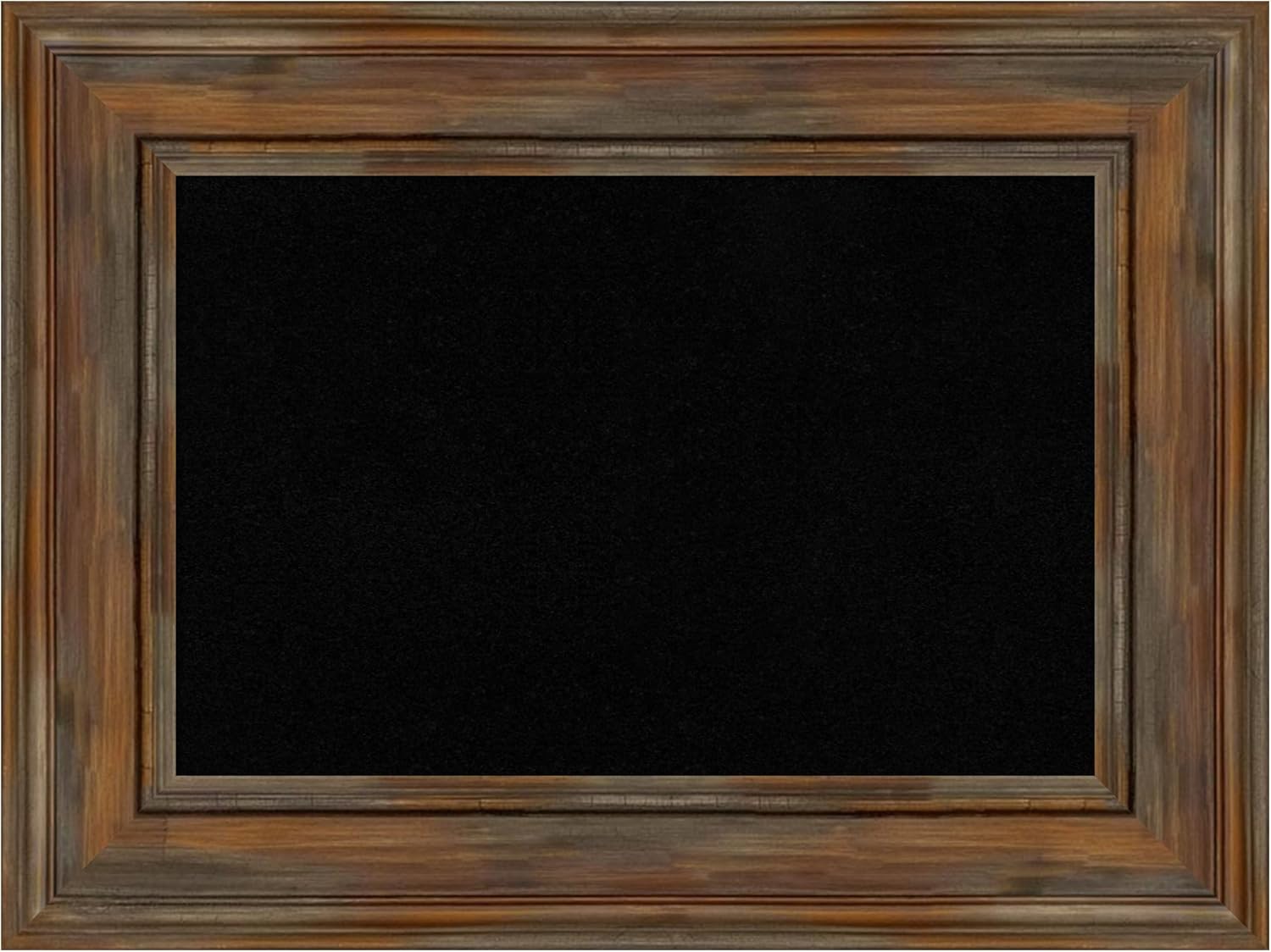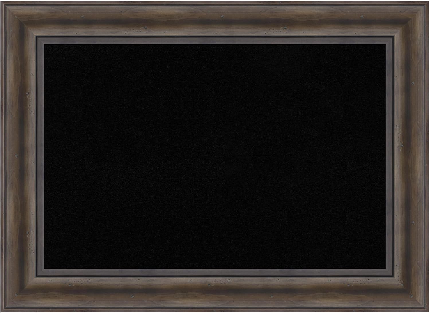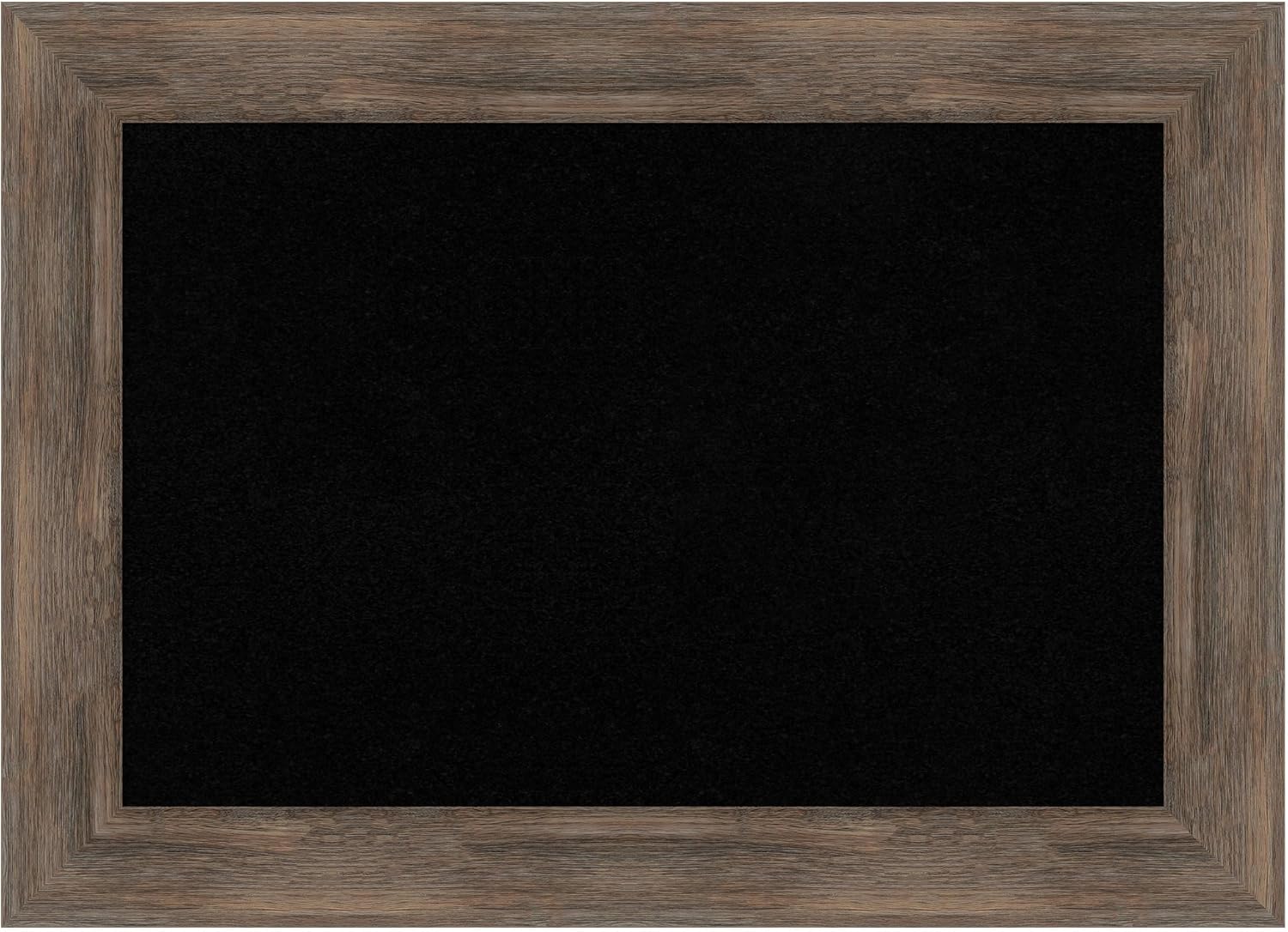 PRODUCT: Framed Cork Board; FRAME: Whiskey Brown Rustic; FRAME FINISH: Distressed; FRAME COLOR: Brown; CORK COLOR: Black; OUTER SIZE: 20 in. x 14 in. The Whiskey Brown Rustic frame is a rustic brown frame with a distressed, weathered finish across its flat surface. A beautifully framed corkboard turns everyday notes and messages into an ever-evolving work of art. This 100% real wood corkboard is a great way to add function to your home without sacrificing style. Organize to-dos, notes, calendars, coupons, or artwork in your kitchen, entryway, mudroom, or laundry room. Individually made using traditional custom framing techniques, it has the quality you would expect from your local frame shop. Because of our attention to detail and focus on artistry, architects, interior designers, and homeowners alike choose this corkboard to create beautiful living spaces.