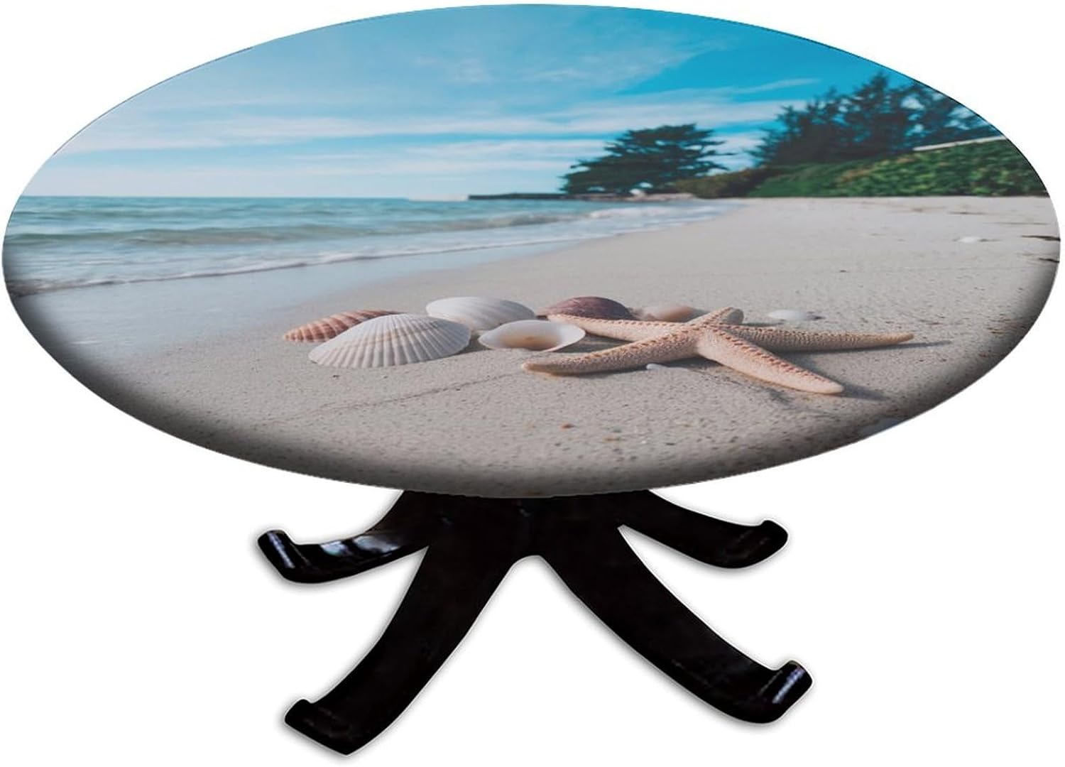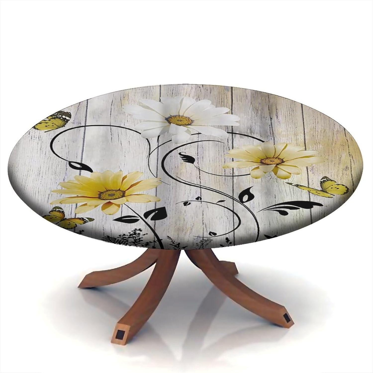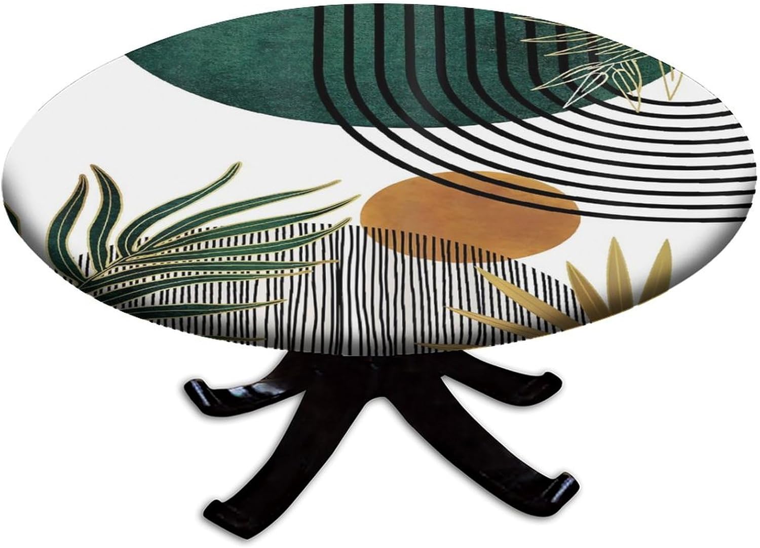 Round Fitted Tablecloths, Circular Elastic Edged Table Covers 100% of the lid edges are sewn with elasticity to ensure that the lid stays on your table and prevents the tablecloth from slipping or falling off. In addition, polyester tablecloths are durable and easy to wipe clean.The polyester tablecloth has bright colors and exquisite graphic design, providing your dining table with a new stylish appearance and preventing scratches and liquid spills. It will help you prevent dirt and dust on the outdoor terrace table.Great tablecloth for indoor and outdoor use; tablecloth has a seamless one piece design.Tablecloth is great for picnics,BBQ's,parties, dinners, restaurants, potlucks, everyday and more.Great for decorating your table.Perfect Size for Your 52" Round/Circle Table The tablecloth diameter is 60" Tablecloth - Fit for 52" TablePackage Included: 1 Round tableclothNotes:1.Due to manual measurement, please allow a difference of 1-3cm.2. Due to different displays and different lights, the picture may not reflect the actual color of the item. Thank you for your understanding.Creates a wonderful and luxurious setting for your family and friends to enjoy together.Protects your table from stains and damages. Easy care, easy clean-up. Stain prevention, water resistant and oil-proof.