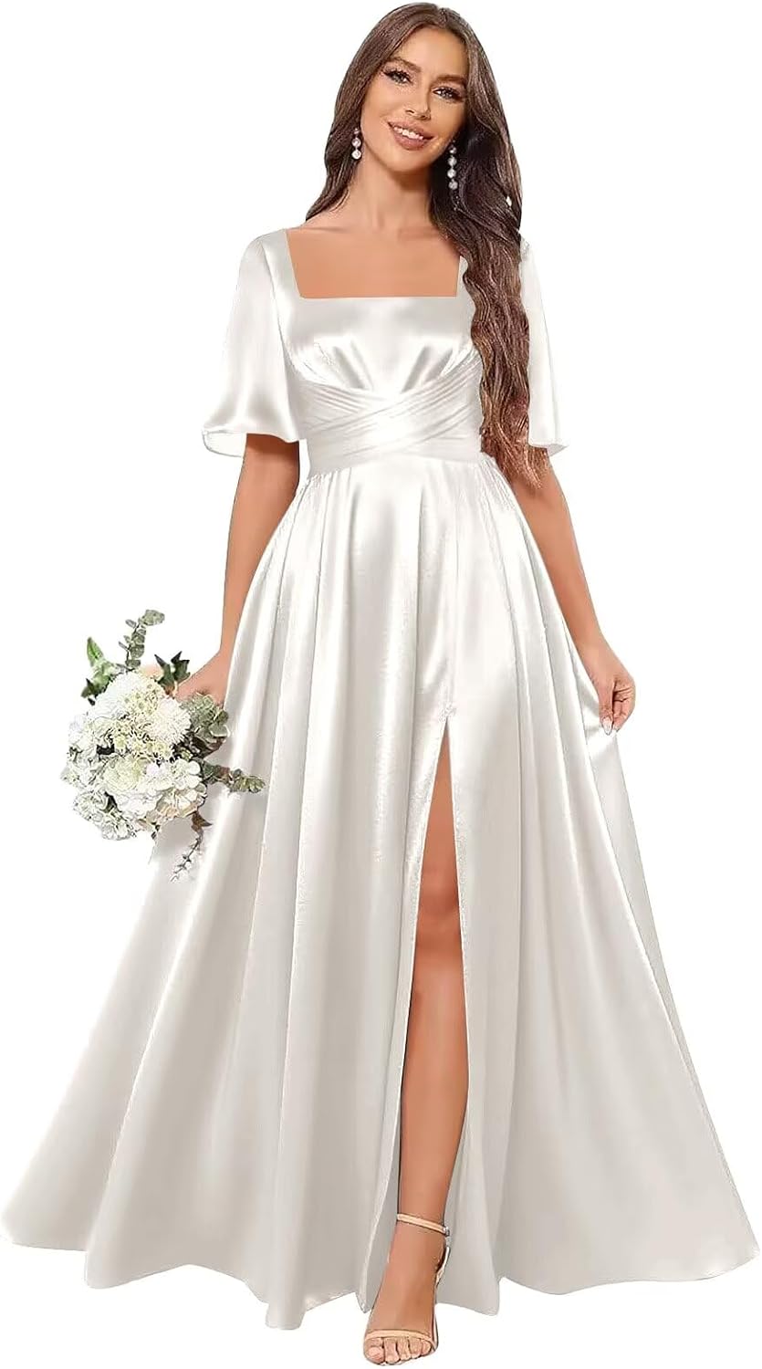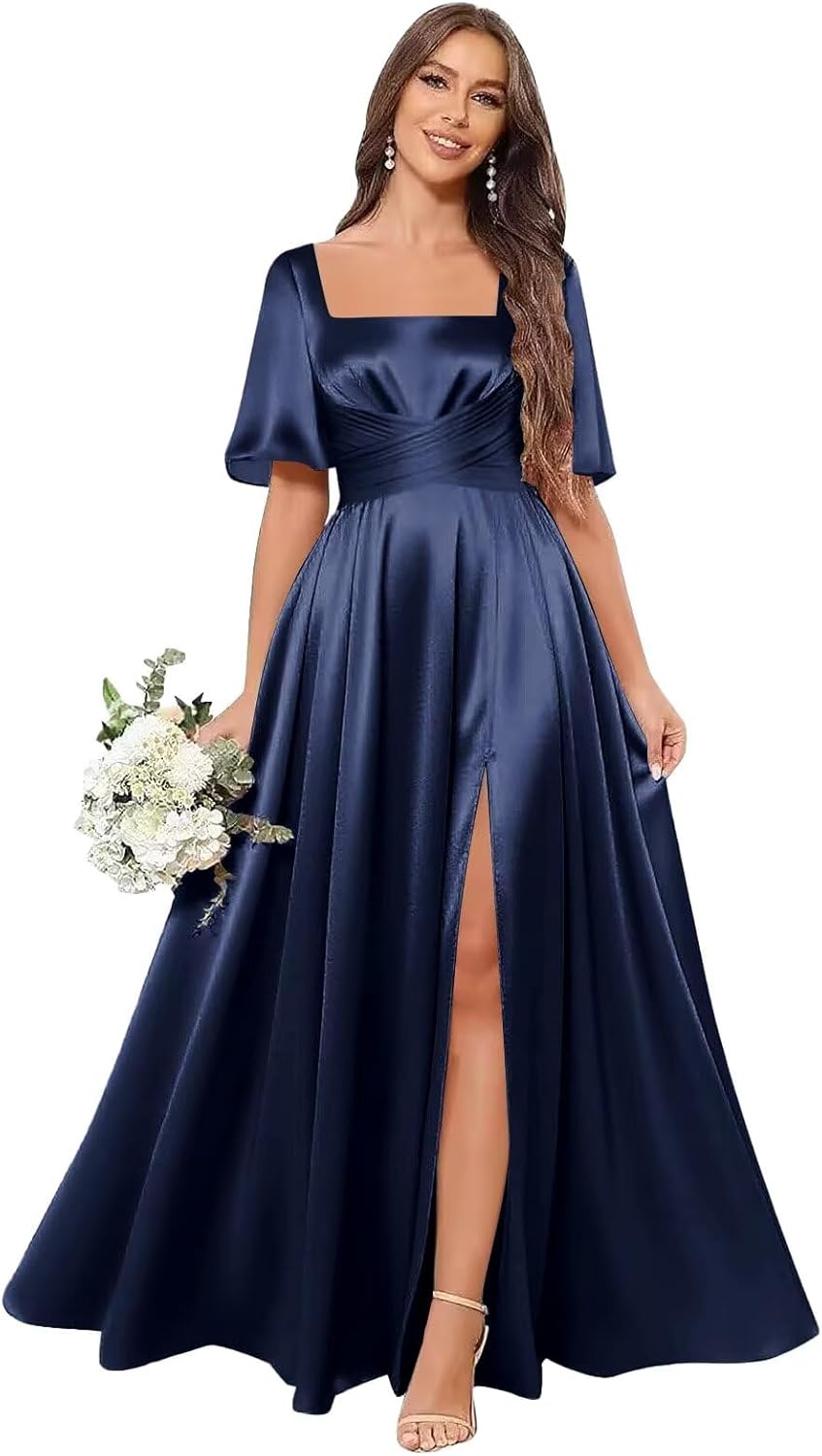 | Fabric Type | Short Sleeve Satin Bridesmaid Dresses for Women with Slit |