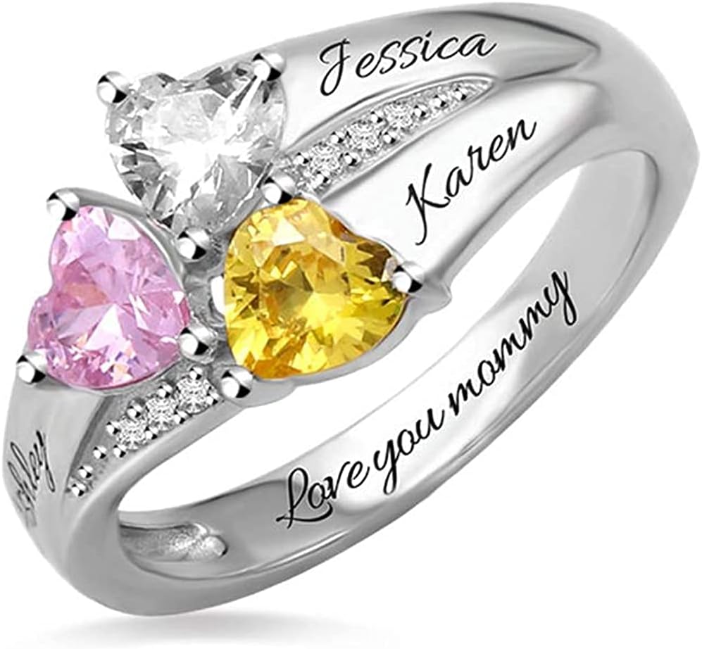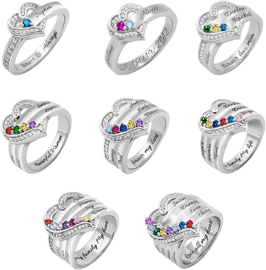 This custom wedding band mothers ring is modern, elegant, and can be personalized. You can personalize it with 1 to 9 names and birthstones. Made of 925 sterling silver, the band is gracefully decorated with 1 to 9 birthstones, all securely sitting in prong setting.