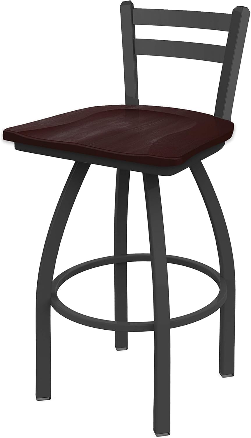 Customize your very own vanity stool/chair with the help of the Holland Bar Stool Co. This Pewter Jackie Low Back chair height stool with a swivel has a contemporary design and provides just enough back support while being able to tuck under your table or counter. The frame is made from commercial quality 16 gauge, 1 3/4 inch tube steel with solid mig welded joints to guarantee strength and durability. The powder coated finish resists chips and scratches and ensures a long-lasting, rich appearance. The wood seats are 1 3/4 inch solid hardwood (oak or maple) and are dished for amazing posterior comfort, making sitting for minutes or hours a pleasure. The cushion seats are of the highest quality as well, utilizing a breathable, commercial grade vinyl or fabric. At the heart of the cushion is 2 1/2 inches of highly-dense, US made foam that provides maximum support and will not breakdown in a couple years. You won't find a higher quality stool on the market. If you are going to finish your counter, dining, desk, or vanity area - do it right, with a stool from the Holland Bar Stool Co. ** 5 year residential structural frame warranty ** Lifetime residential warranty 52 ball bearing swivel**Made In USA**