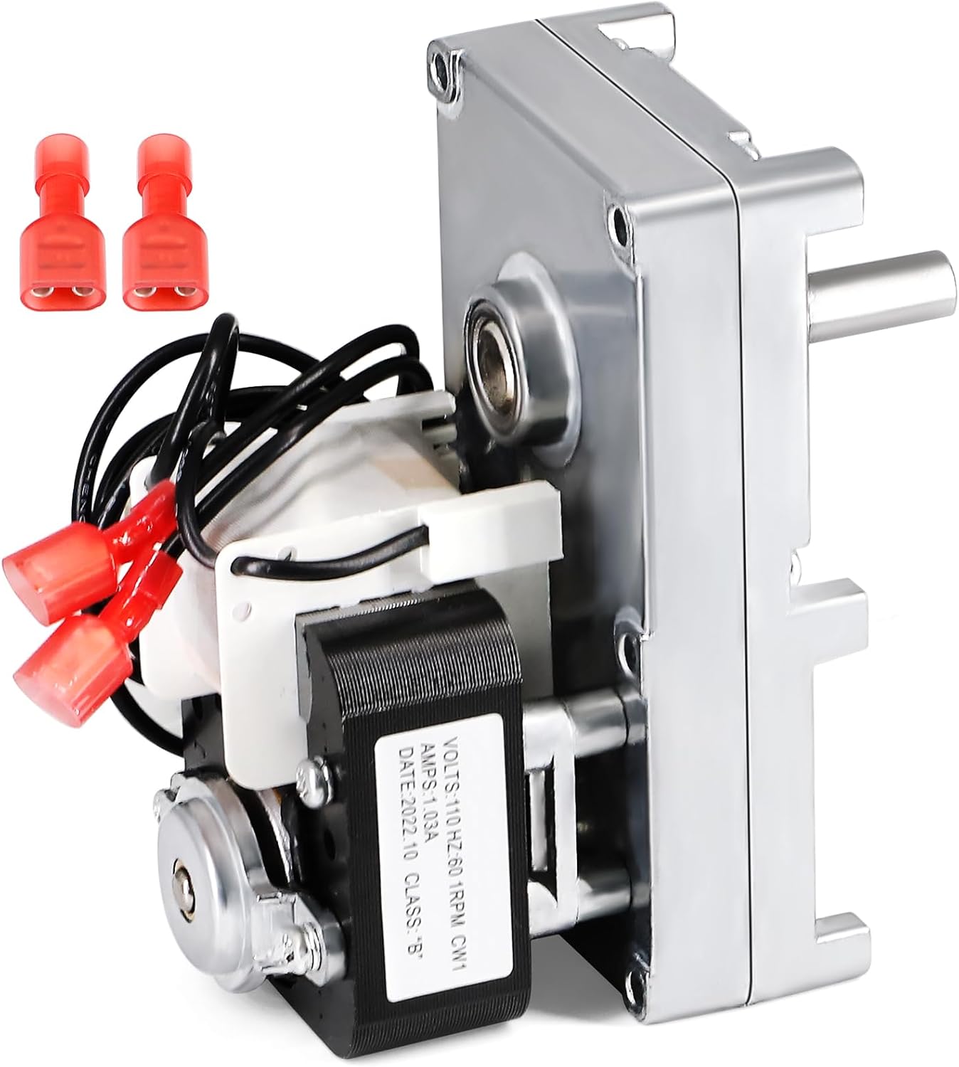 Replacement Kozi Auger Feed Motor, 1 RPM Clockwise.- Volts: 110- Hz: 60- Amps: 1.03A- RPM: 1- Direction: Clockwise- Shaft: 3/8" Dia. x 1 1/8" Length- Connectors: 1/4" Male Spades► Replaces Part Numbers - MTR12001. ► For Kozi Pellet Stoves Parts Models - Model 100, 100 Insert, 100 XL, Baywin, KSH120, Previa, KSH280, Milan, KSH Shop Heaters.