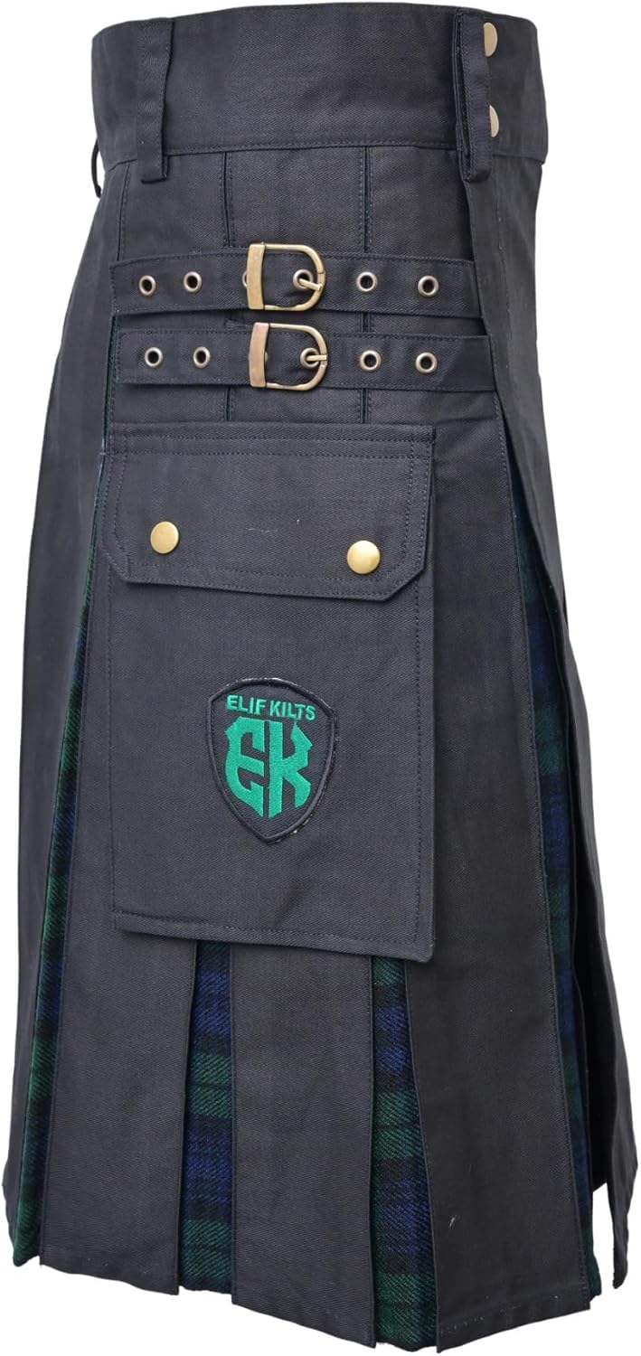 The kilt is made from a mixture of acrylic wool and cotton fabrics. Perfect for Scottish fashion lovers, the classic style and elegant look and skilled craftsmanship. This is the perfect costumes kilts for mens.Measure yourself before you order and choose the best possible size from the options given. Always measure your Traditionally Kilts size at the level of the Belly Button. Do not select regular pants/jeans sizes because kilt sizing is different from trouser size. Kilt Waist size is usually one to two sizes bigger than pants waist size. The length size is the same for all sizes but can be customized on demand. The real leather straps for adjustment options are also available, you can adjust your kilt according to your body size with the help of these leather straps and Two Side Cargo Pockets with flap closures enough space for a Wallet, Mobile phone, Keys & other essential belongings. No additional need for Sporran.Specially designed for Scottish, and Irish Weddings, St. Patrick’s Day Parade, Highland games, and parties. Equally good for daily and casual use. Perfect for the festivals of Scotland and Ireland, Coplay, stage performances, parades, parties, and other events. Highly comfortable even wearing for long hours. It perfect choice for summer, fall & spring. Dry cleaning is the best way to keep this kilt looking fresh and colorful for a long time, making it a convenient option for everyday wear or special events.