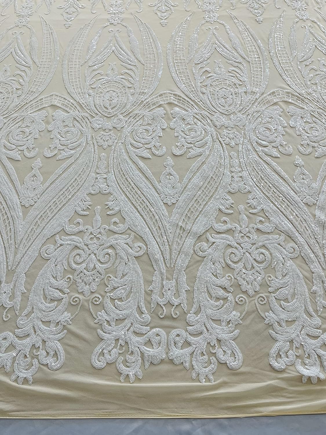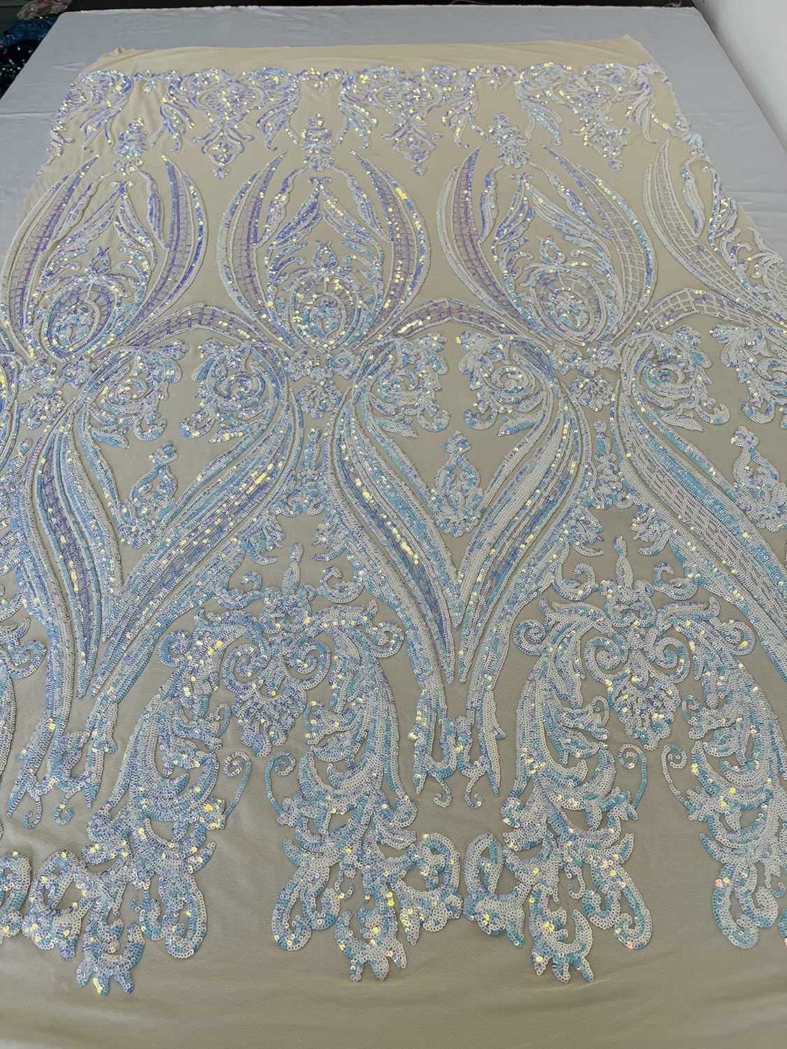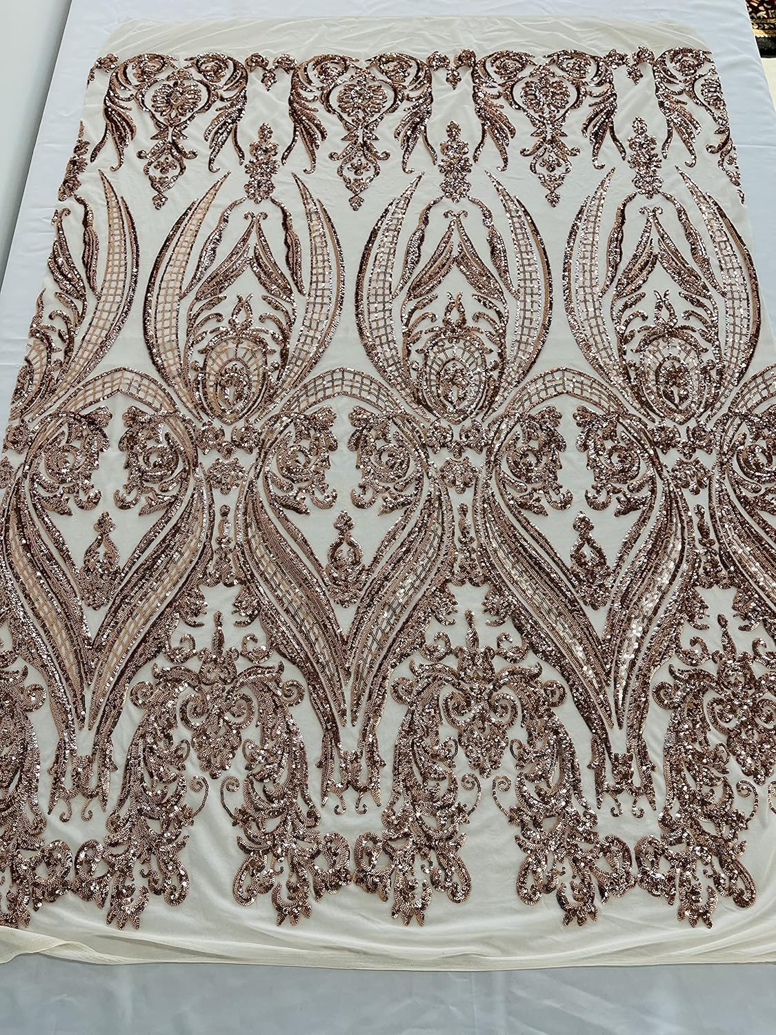 The Sequins has especial and extraordinary design on the Mesh . It is super elegant and classy, The royalty design embroider with Sequins on a mesh can be use for dresses, night gowns, Skirts, prom dresses, wedding dresses, decoration and much more. Dear costumes please feel free to ask us, how much we have in stock on any item you want to purchase, do to the high volume of item in my store I don't put too much on my quantity box, but I do have a good stock on my items
