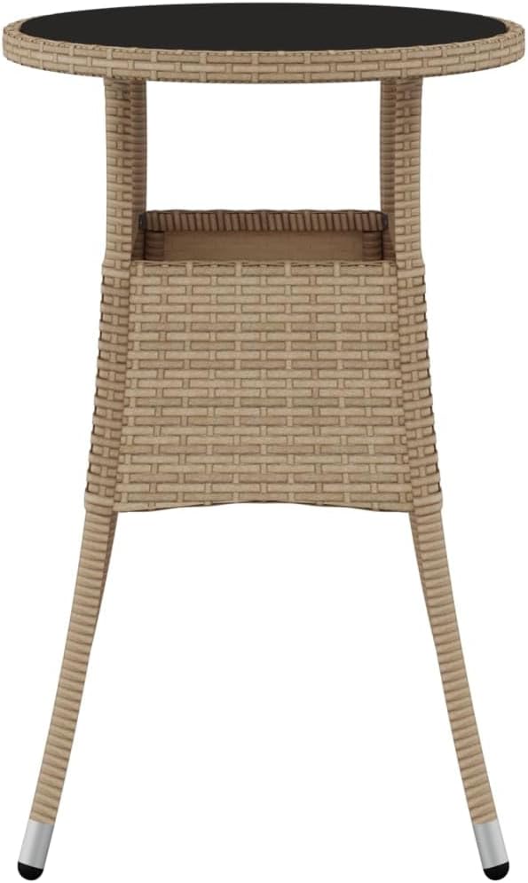 Combining both style and function, this poly rattan garden table will surely be the centerpiece of your garden, patio or any other living space.Featuring a powder-coated steel frame wrapped with poly rattan, the outdoor table is durable. In addition, the tabletop is made of tempered glass, making it easy to clean. Thanks to the lightweight construction, the garden table is easy to move.Note: In order to extend the life of your outdoor furniture, we recommend you to protect it with a waterproof cover.Color: GrayMaterial: Poly rattan, powder-coated steel, tempered glassDimensions: 23.6" x 29.5" (Diameter x H)Glass thickness: 0.2"With protective rubber for glassAssembly required: Yes