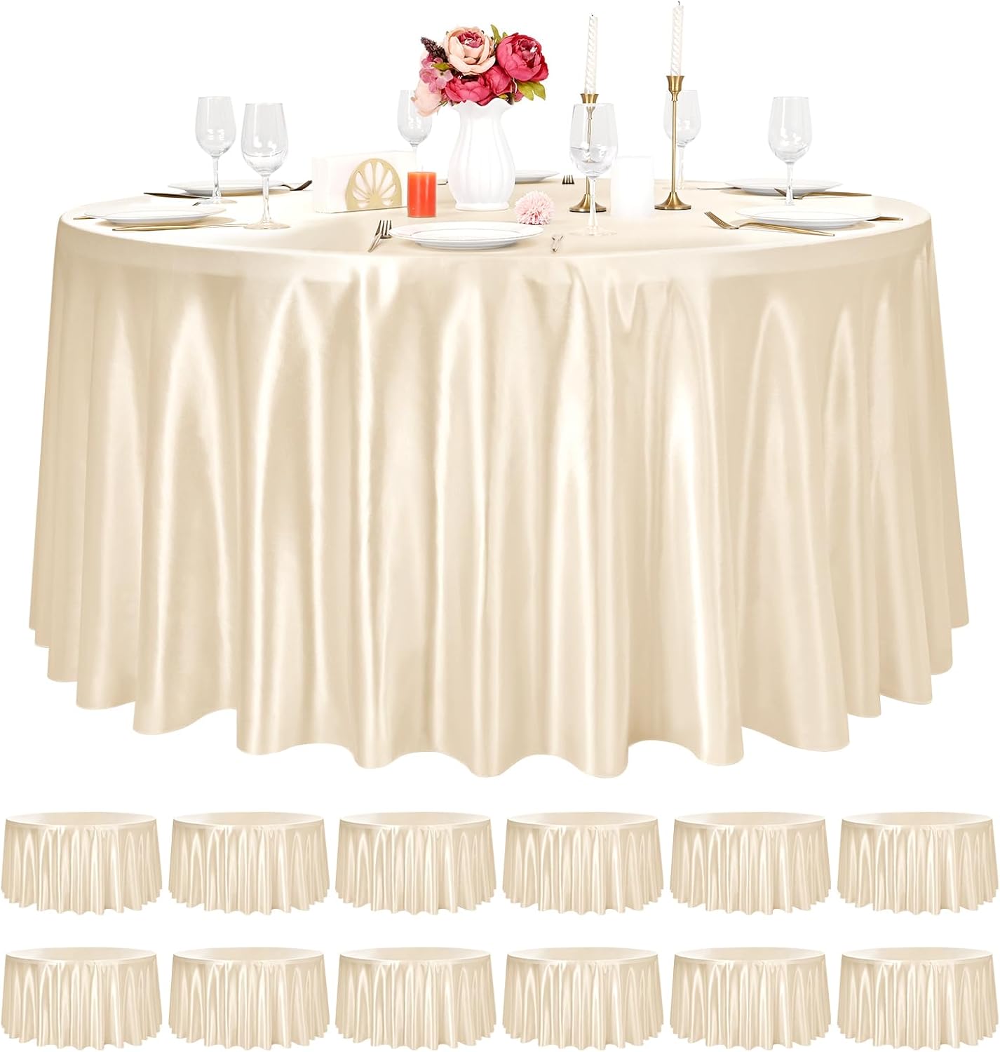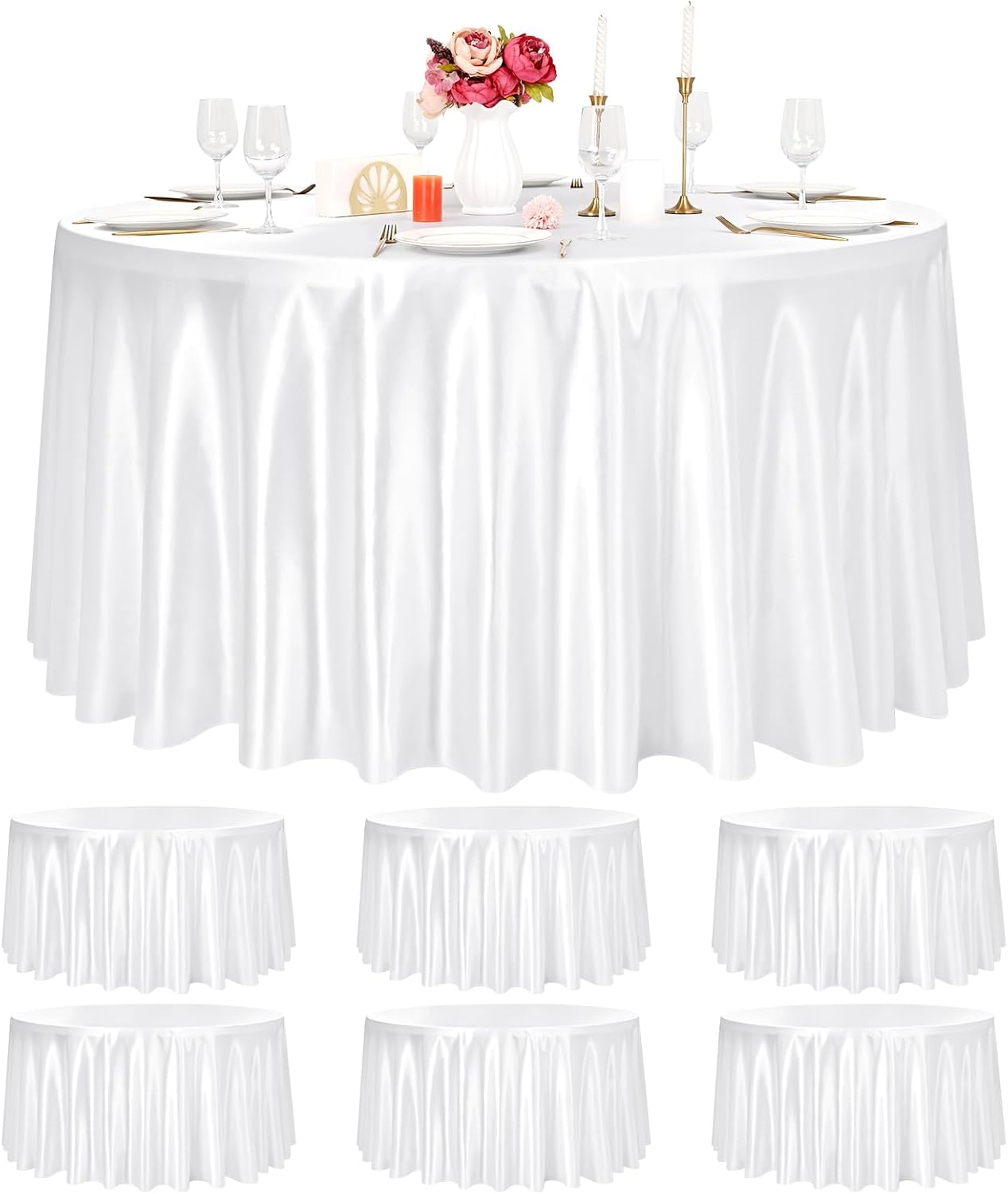 Product Description:108 Inch Satin Round Tablecloth Features:1. Made of high-quality satin material, the Round satin tablecloth is smooth and delicate, soft and comfortable to touch, with good brightness and drooping feeling, not easy to deform or damage; what's more, it is colorfast and wrinkle-free, durable and reusable, which can protect your table well for a long time. The exquisite design and elegant color make the table cover an ideal decoration for your dinner party.2. Tablecloth is made by skilled artisans. The Burgundy Round tablecloths are designed with folded borders and fine stitching to ensure an elegant look and no loose threads. Our color-fast dyes stay vibrant and true, and will not fade or transfer during washing or use. Can be withstand repeated use and frequent laundering.3. The silky and shiny appearance, the Round satin tablecloth has wide applications to meet your daily needs, suitable for a variety of formal occasions, like wedding banquets, dinners, conferences, celebrations, ceremonies, various parties, etc.; what's more, it can also be used as decorations and common tools in hotels, dining rooms, and kitchens, bringing convenience for your life, practical and exquisiteSpecification:Quantity: 12 PiecesMaterial: High-quality Satin material.Size: 108 InchPattern: Romantic & VintageColor:BurgundyWash Tips:1. The tablecloth is reusable. It can be washed by hand or machine, whether in cold or hot water.2. Proper ironing after drying can make it look brand new without worrying about fading.Package Includes:12 Pack 108 Inch Burgundy Round TableclothOur Service:24hours online customer serviceIf You're not completely satisfied with your purchase simply let us knowWe will help you solve your problem well.Notes:Manual measurement, please allow slight size error.Colors may vary slightly due to different screen displays.