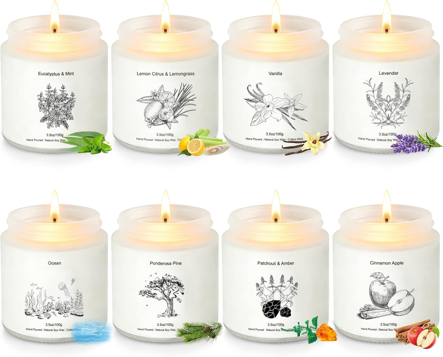 | Scent Name | Jasmine & Lily, Peony & Rose, Lemon Verbena, Summer's Night, Eucalyptus Mint, Coconut & Sea Breeze, Lavender & Chamomile, Green Tea & Bergamot |