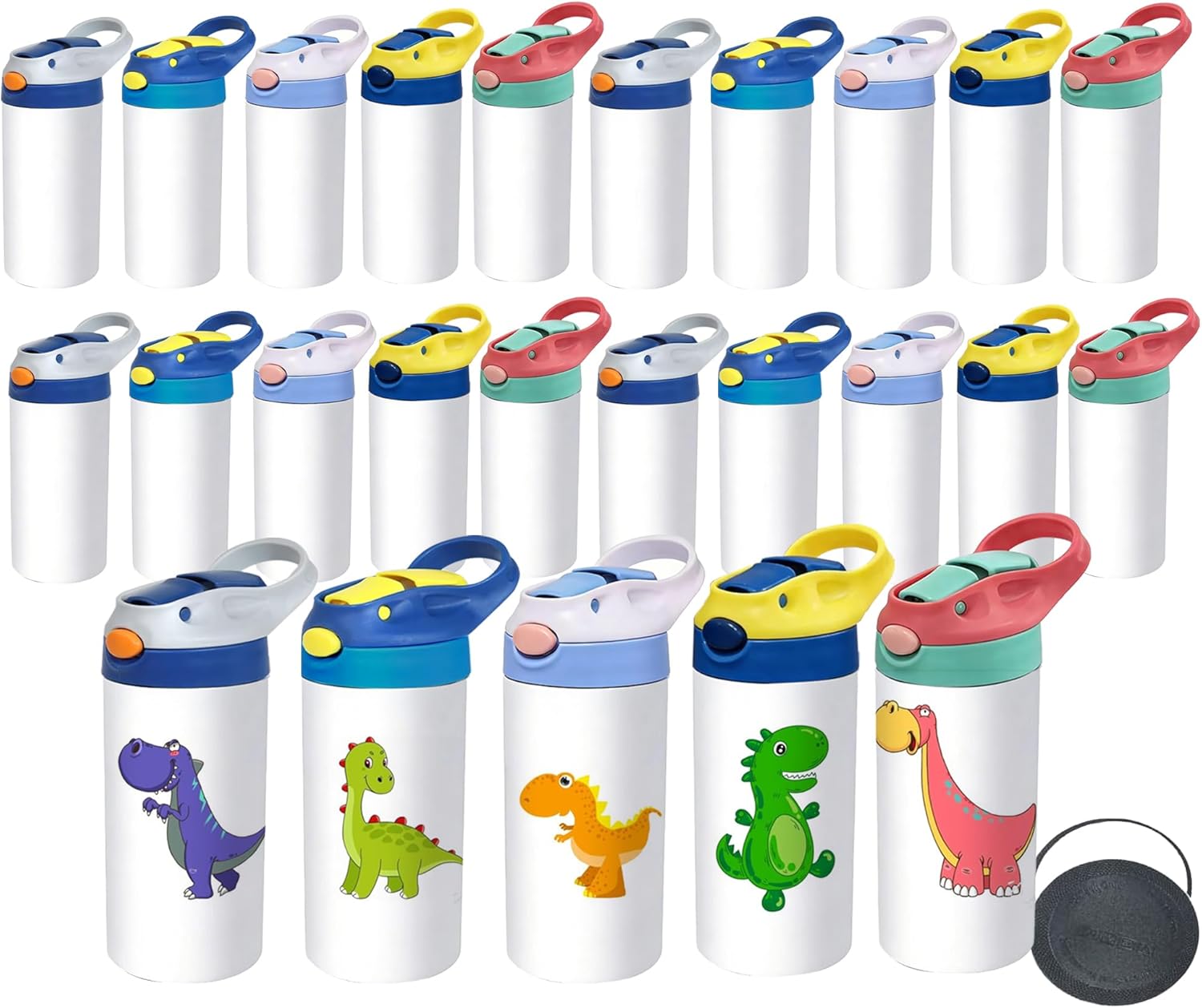 12 PACK 12oz Stainless Steel Sublimation Sippy Cup,Double Wall Insulated Tumbler with Handle,Spill Proof lid,Shrink Films,Silicone Bottoms,for Water,Drinks