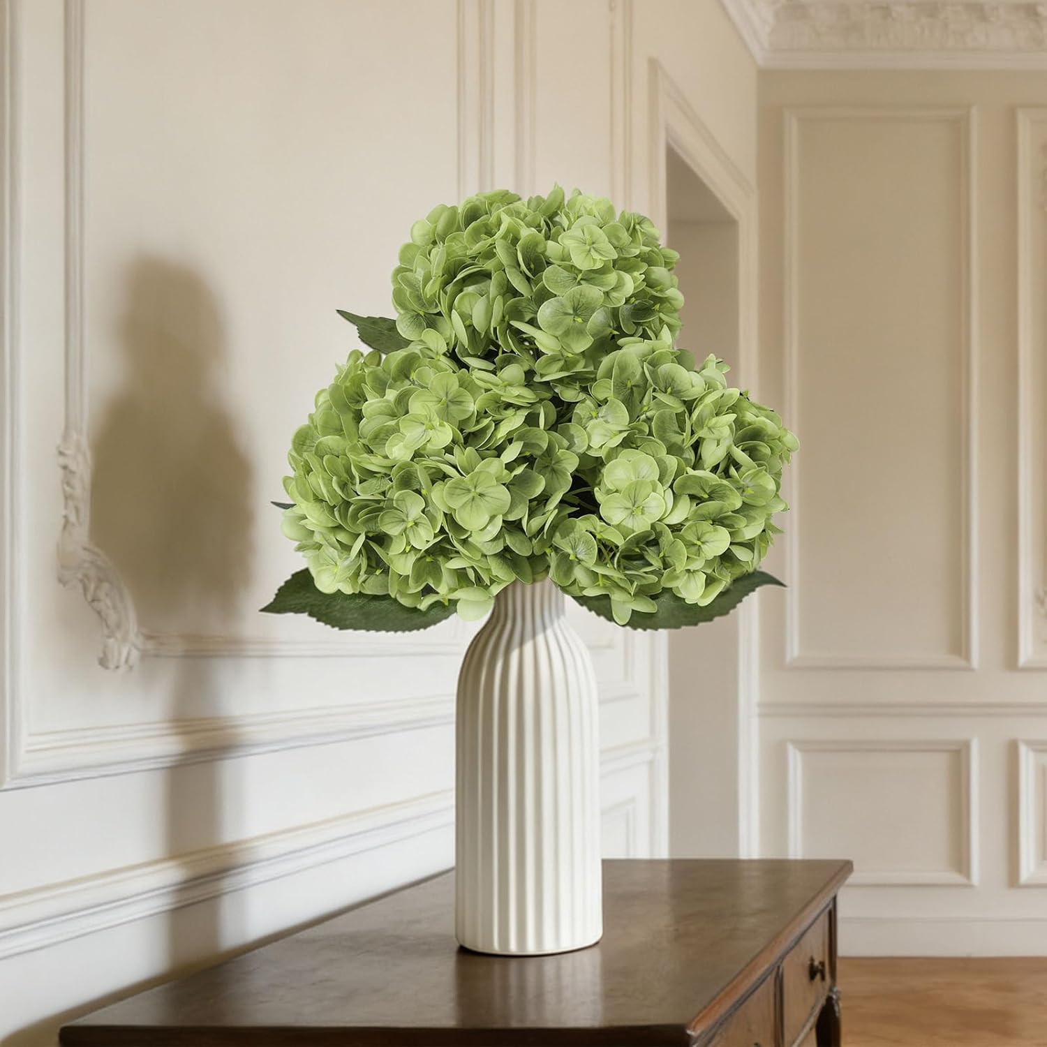 Realistic Appearance: These artificial hydrangeas look incredibly lifelike, featuring full, soft, real-touch latex petals that are safe, odorless, and gentle for people and pets. Larger and more vivid than ordinary hydrangeas. When sprayed with water, the petals can hold droplets for a fresh look. Suitable for outdoor display and resistant to fading. (Vase not included.)