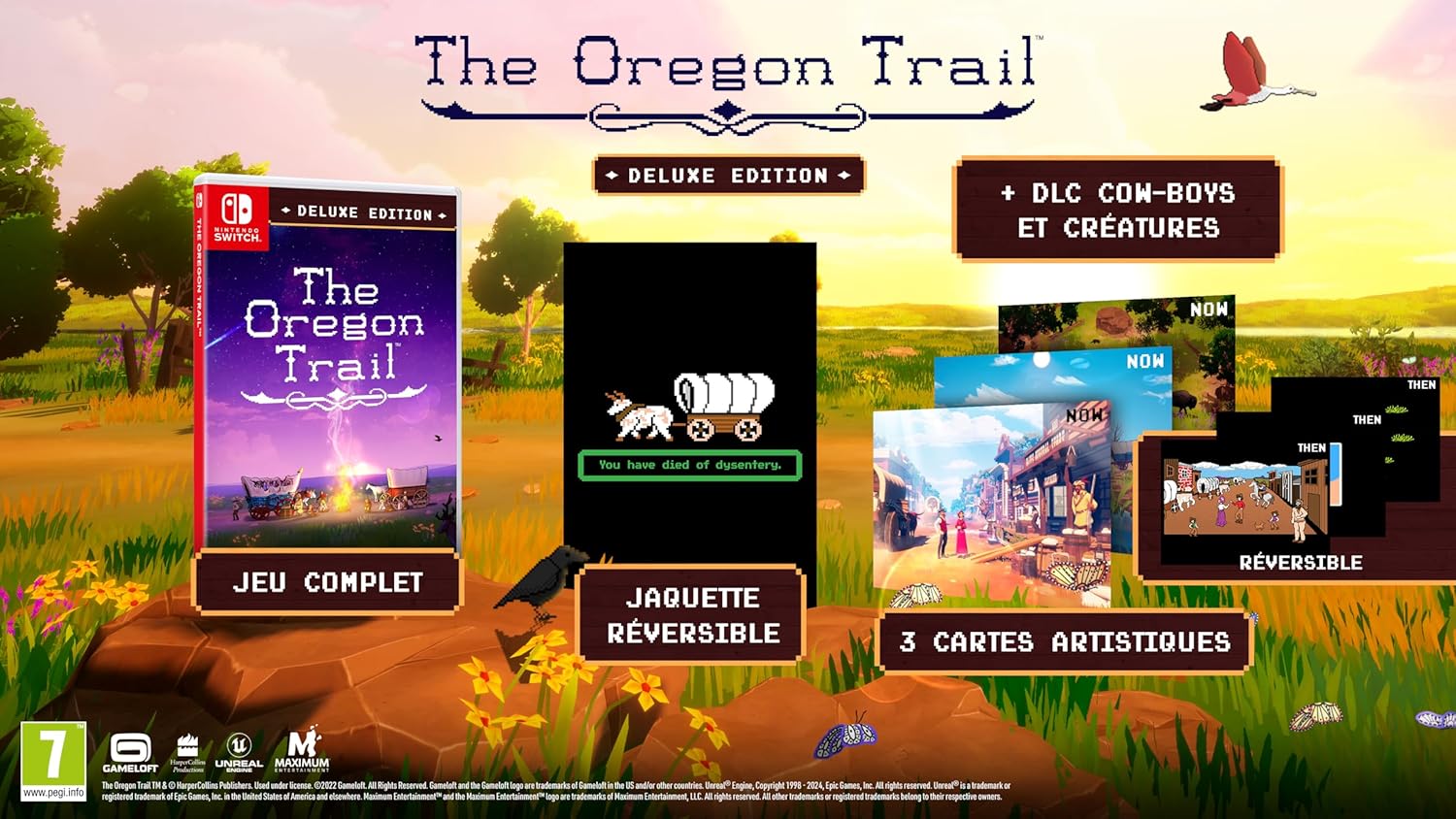 The Oregon Trail by Gameloft—Experience The Oregon Trail like never before. A modern twist on the trials and tribulations of the road to Oregon, this official successor to the global phenomenon will immerse players in exhilarating journeys ranging from the historically accurate to the totally extreme. Players will pick their traveling party, stock the wagon with supplies, and embark on an adventure filled with tough choices, new dangers, and unexpected situations. Surviving blizzards, broken limbs, snakebites, exhaustion, starvation, and the dreaded dysentery is no small feat; all the while navigating an untamed frontier to get your party to their new life in Oregon before the winter. Track down a missing party in the aftermath of a fierce blizzard, transport volatile gunpowder through blistering desert heat, compete in challenging hunting mini-games, and meet a broad cast of historic figures. With procedurally selected random events where players’ choices affect their party and future game events, there’s always a new adventure on the horizon every time you play. Deluxe Edition Content. Find your way through hazards and harsh weather. Stock your wagon carefully for the trail ahead Guide your party to their new life in Oregon. The Oregon Trail Deluxe Edition includes: The Cowboys and Critters DLC, 3 reversible "Now and then" art cards depicting images from yesteryear, and an Iconic Oregon Trail Reversible Coversheet that will invoke memories from days gone by!