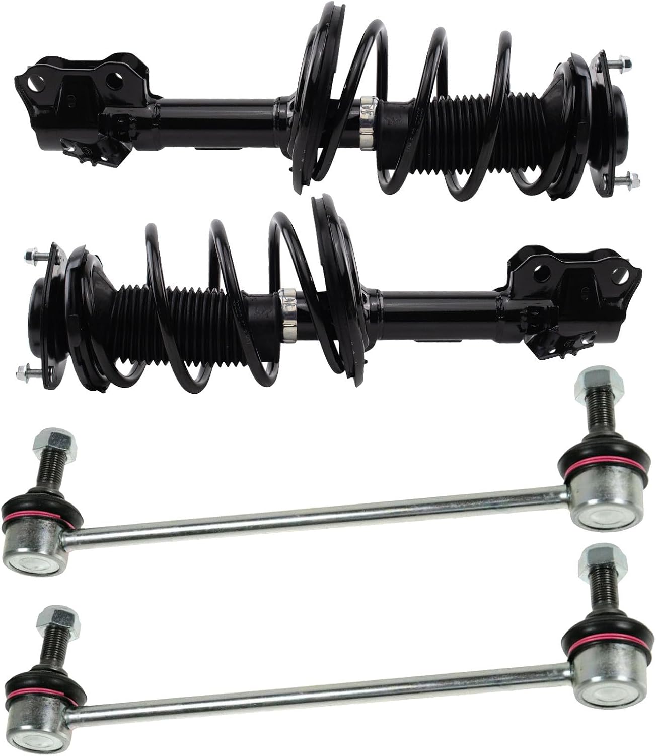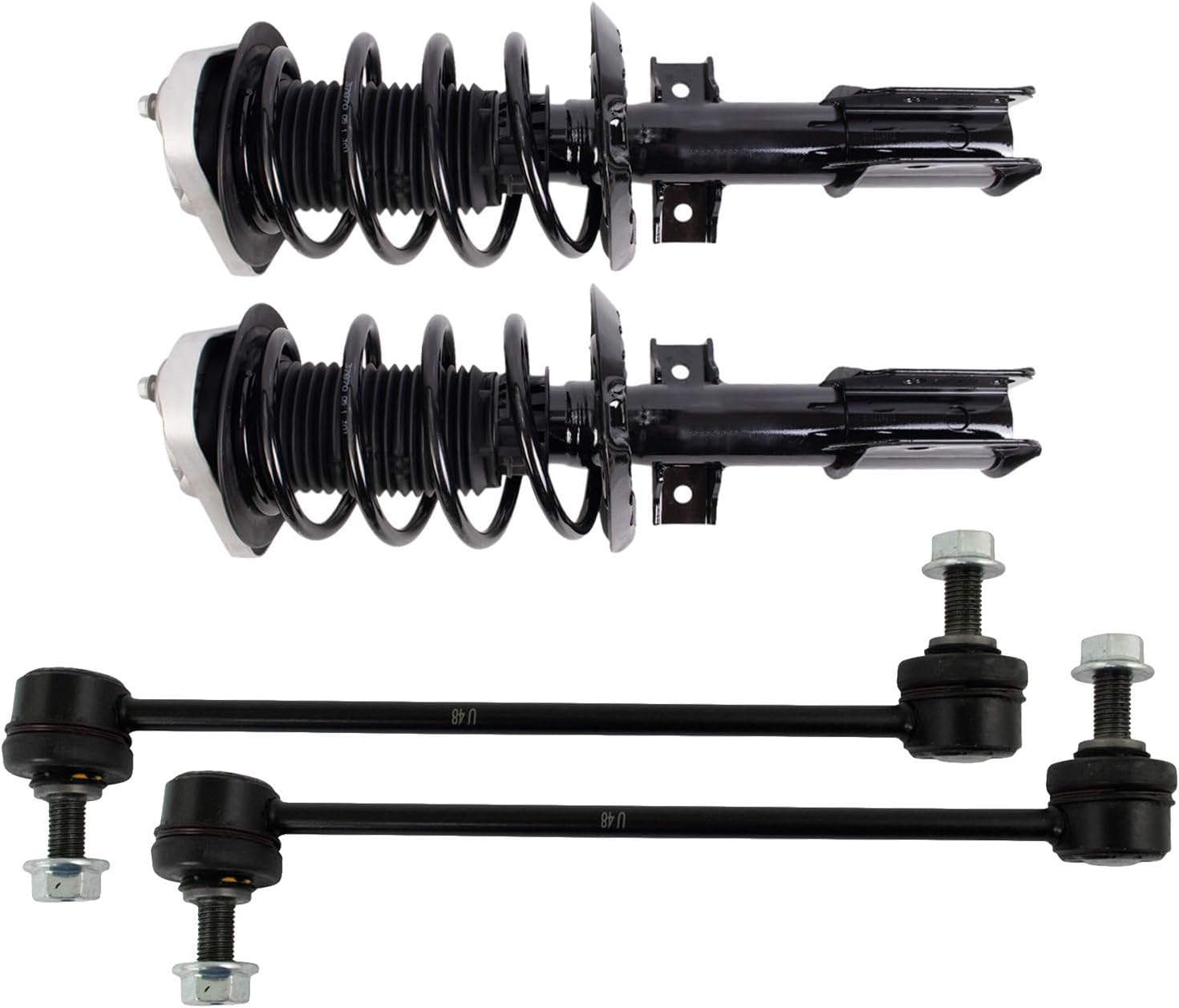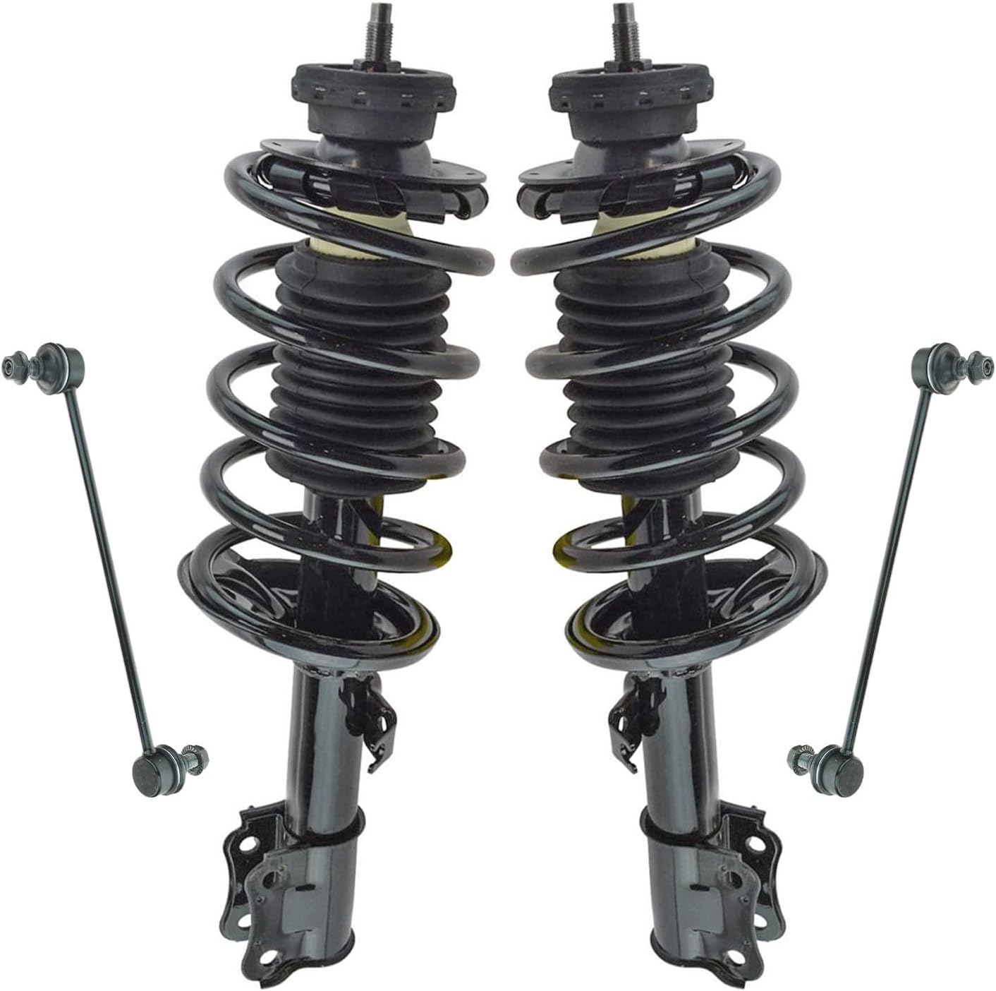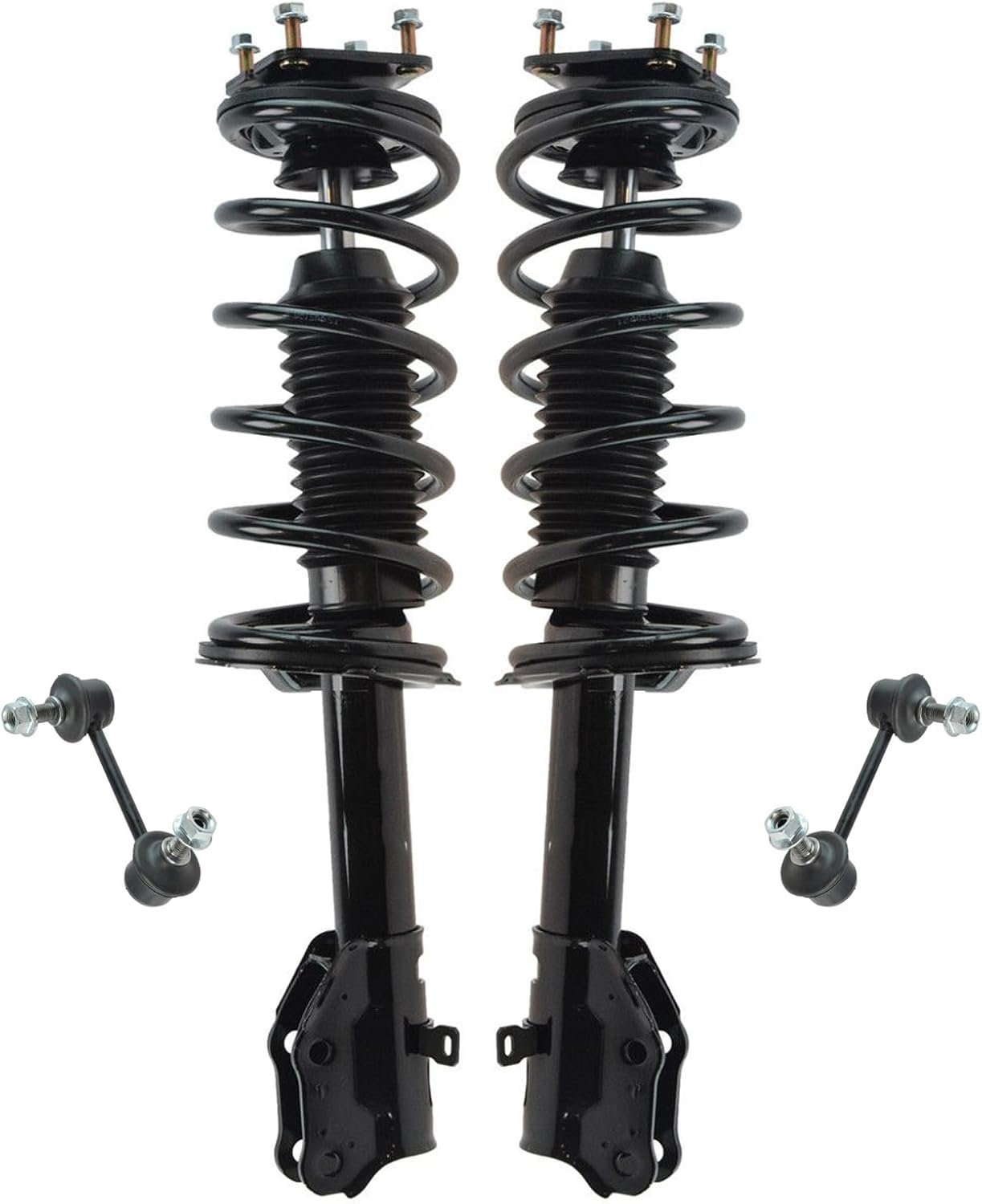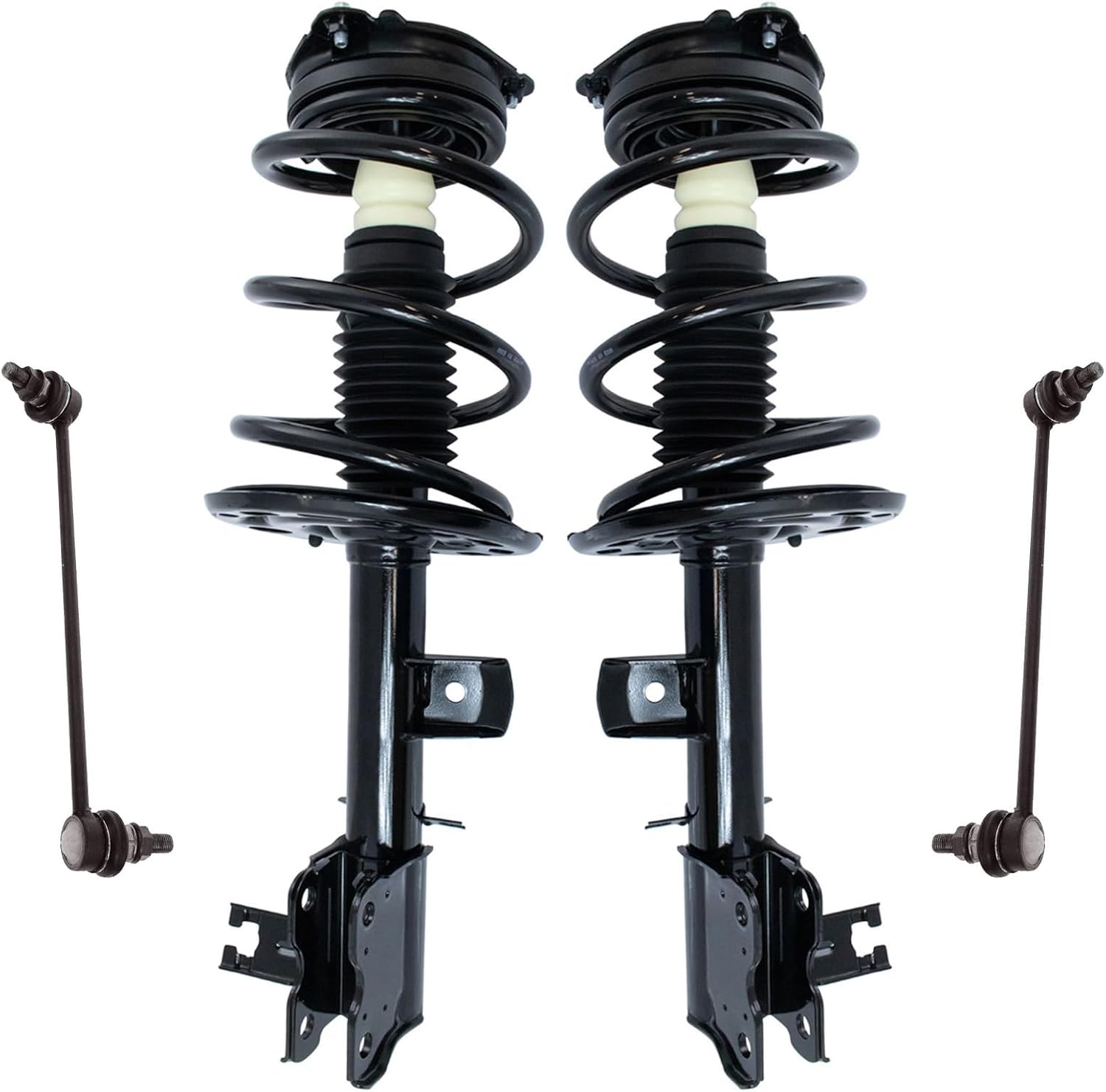 4 Piece Suspension KitKit Includes(2) Front Strut & Spring Assemblies(2) Front Sway Bar LinksFitmentToyota Camry 2012-17 - SE FrontProduct AttributesQuantity: 4 PieceProduct Features Application Specific Design: No modifications necessary Anti-Corrosion Coated: Enhanced surface life Pre-greased: No additional maintenance required Kitted for Restored Performance: Improved road-feel and handlingItem DetailsTRQ suspension kits are manufactured using premium raw materials and coatings for extended service life. Each TRQ suspension component is designed to be a direct, maintenance-free replacement to the stock unit. To extend the life of your steering and suspension components, TRQ recommends replacing components in pairs, sets, or kits. All products are fit and road-tested in our Massachusetts R&D facility to ensure we deliver on our promise of Trusted Reliable Quality.Reference Numbers101-6408101-6411116931169417299217299318-81822518-8182262701-5362962701-5362974882033060501793049501793059517603K001K750123K750170KYBSR4255KYBSR4256MS86848MS86855SHO01540SR4255SR4256SR4259SR4260SUS06774SUS07173