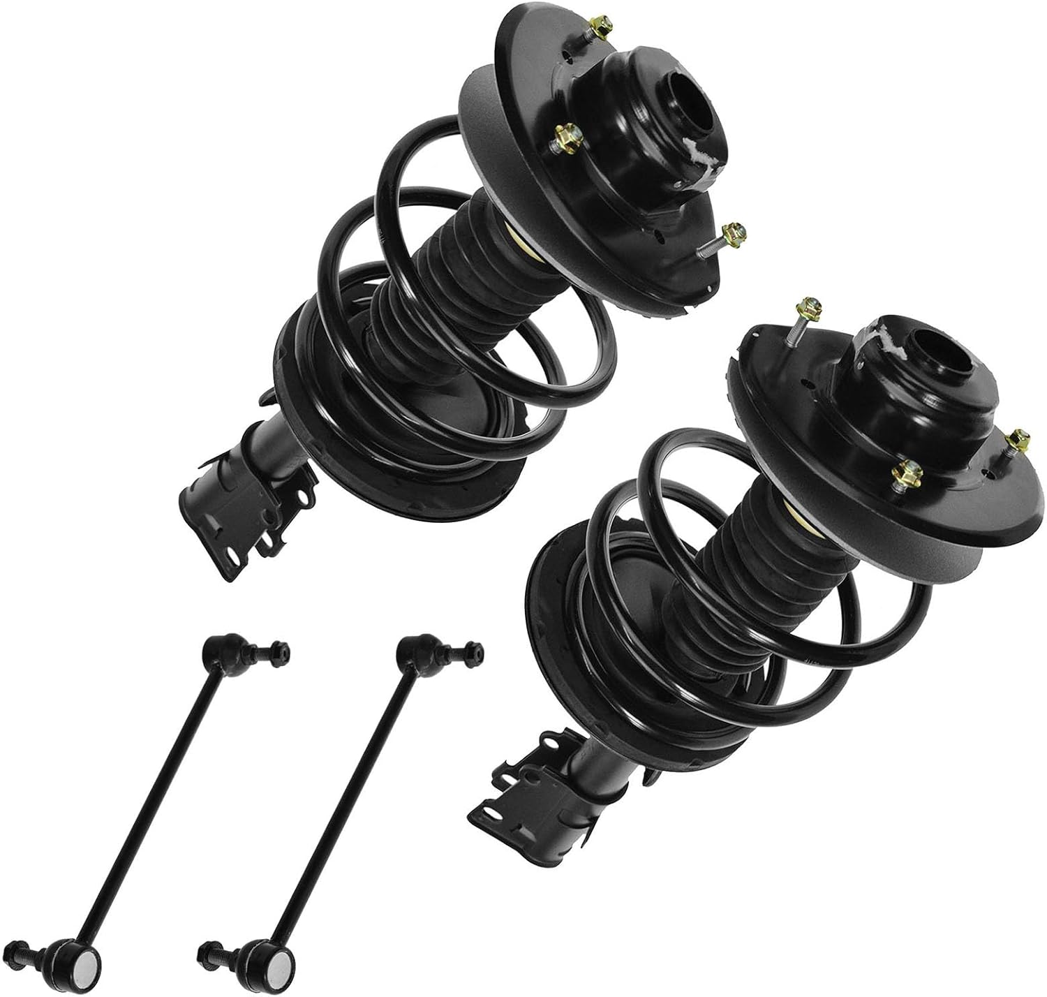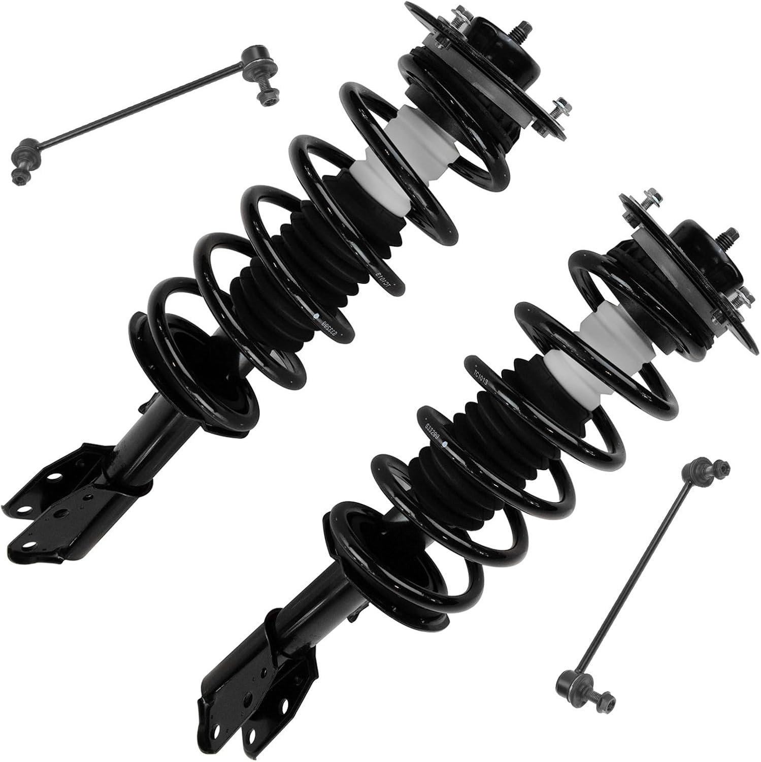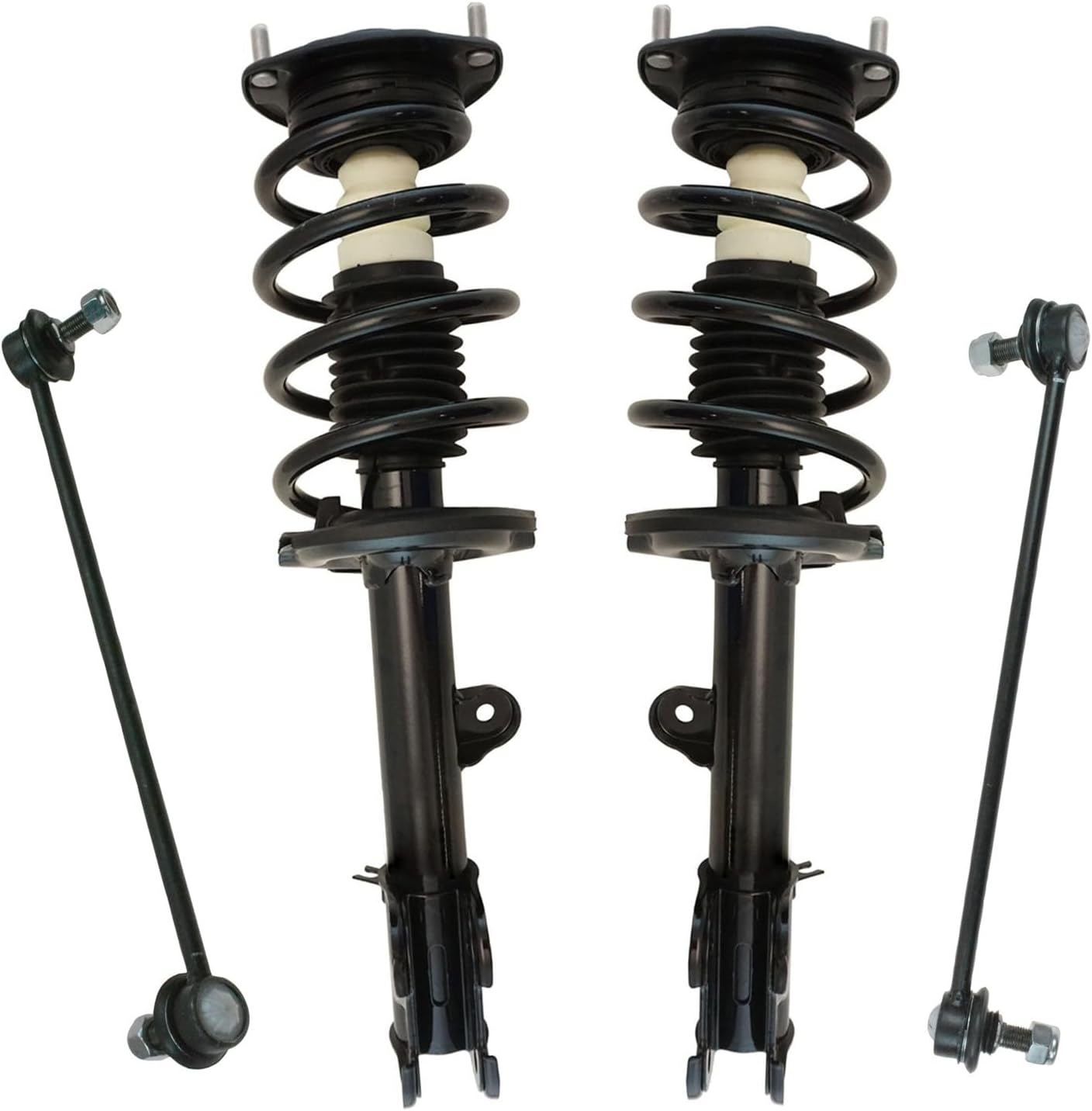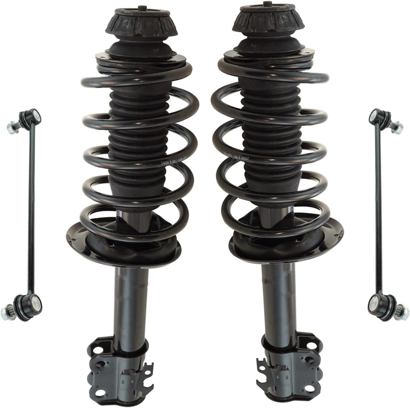 4 Piece Suspension KitKit Includes(2) Front Strut & Spring Assemblies(2) Front Sway Bar LinksFitmentToyota Camry 2012-17 - SE FrontProduct AttributesQuantity: 4 PieceProduct Features Application Specific Design: No modifications necessary Anti-Corrosion Coated: Enhanced surface life Pre-greased: No additional maintenance required Kitted for Restored Performance: Improved road-feel and handlingItem DetailsTRQ suspension kits are manufactured using premium raw materials and coatings for extended service life. Each TRQ suspension component is designed to be a direct, maintenance-free replacement to the stock unit. To extend the life of your steering and suspension components, TRQ recommends replacing components in pairs, sets, or kits. All products are fit and road-tested in our Massachusetts R&D facility to ensure we deliver on our promise of Trusted Reliable Quality.Reference Numbers101-6408101-6411116931169417299217299318-81822518-8182262701-5362962701-5362974882033060501793049501793059517603K001K750123K750170KYBSR4255KYBSR4256MS86848MS86855SHO01540SR4255SR4256SR4259SR4260SUS06774SUS07173