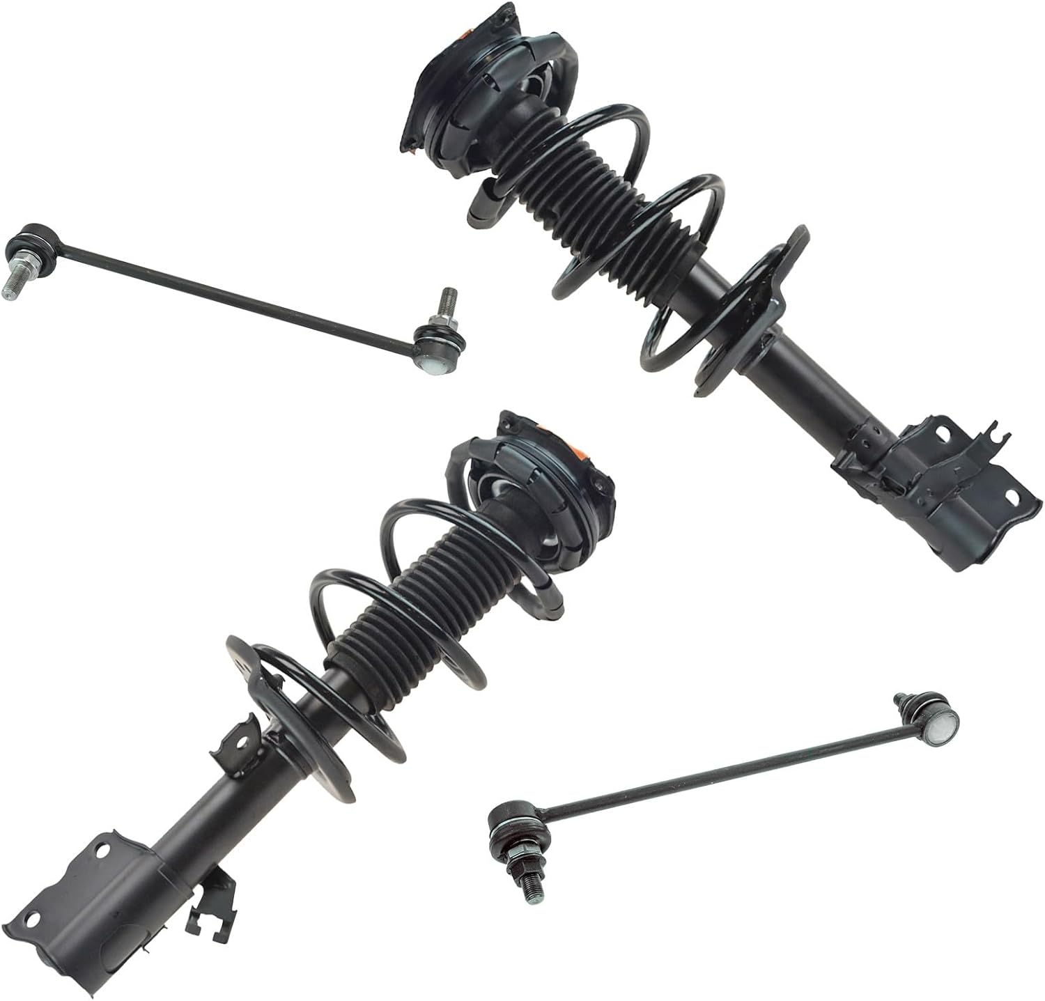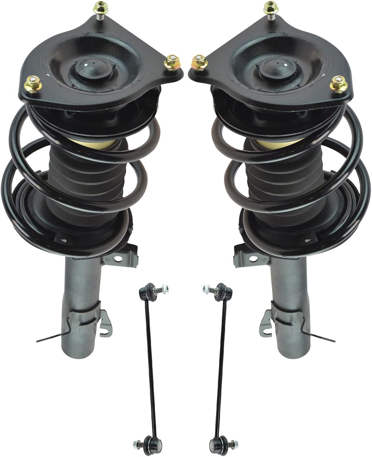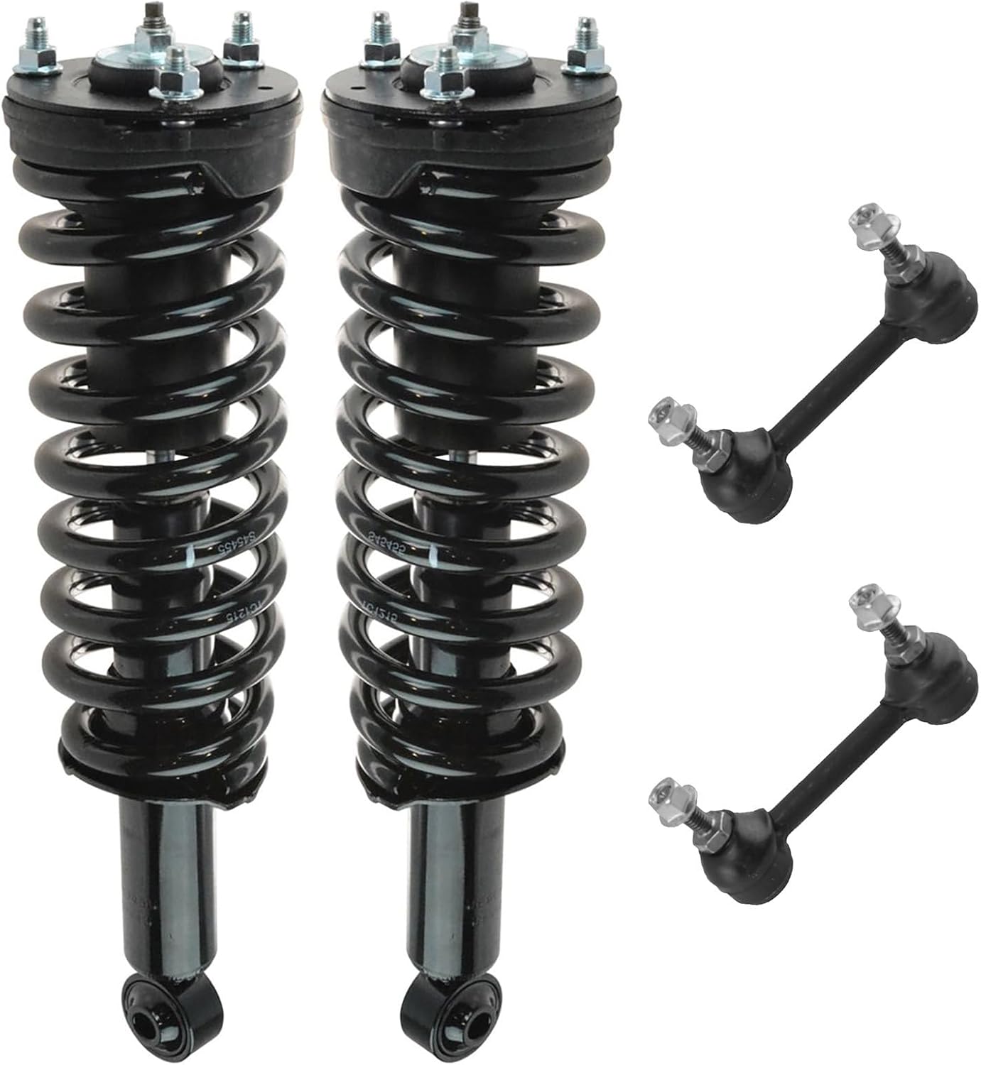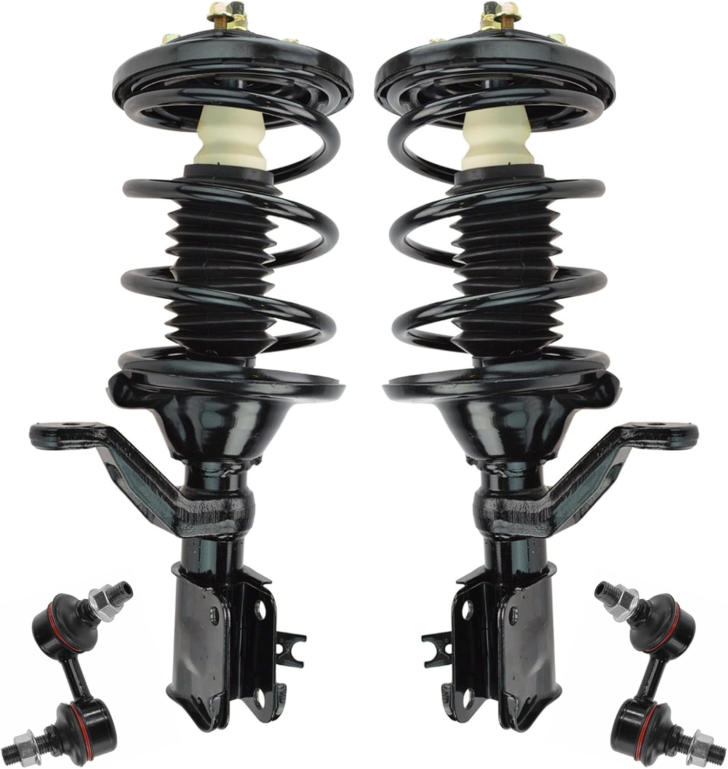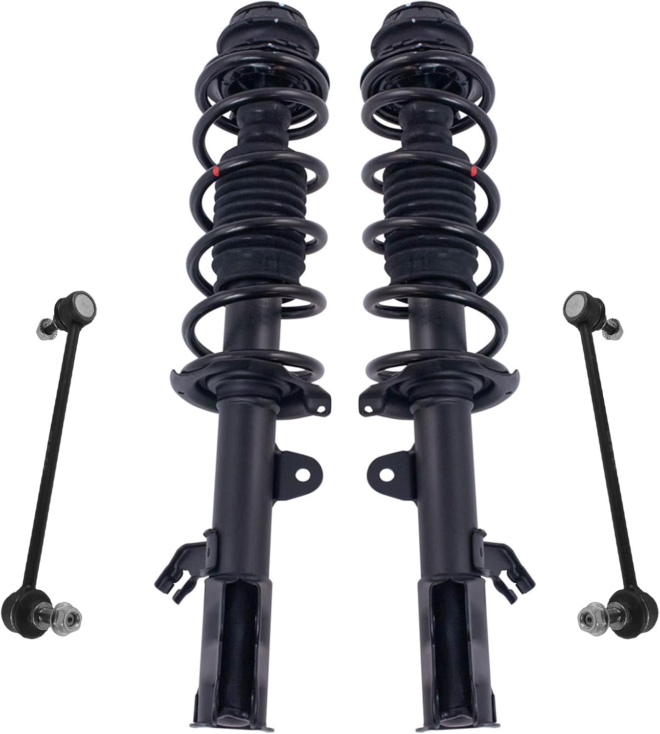 4 Piece Suspension KitKit Includes(2) Front Strut & Spring Assemblies(2) Front Sway Bar LinksFitmentToyota Camry 2012-17 - SE FrontProduct AttributesQuantity: 4 PieceProduct Features Application Specific Design: No modifications necessary Anti-Corrosion Coated: Enhanced surface life Pre-greased: No additional maintenance required Kitted for Restored Performance: Improved road-feel and handlingItem DetailsTRQ suspension kits are manufactured using premium raw materials and coatings for extended service life. Each TRQ suspension component is designed to be a direct, maintenance-free replacement to the stock unit. To extend the life of your steering and suspension components, TRQ recommends replacing components in pairs, sets, or kits. All products are fit and road-tested in our Massachusetts R&D facility to ensure we deliver on our promise of Trusted Reliable Quality.Reference Numbers101-6408101-6411116931169417299217299318-81822518-8182262701-5362962701-5362974882033060501793049501793059517603K001K750123K750170KYBSR4255KYBSR4256MS86848MS86855SHO01540SR4255SR4256SR4259SR4260SUS06774SUS07173