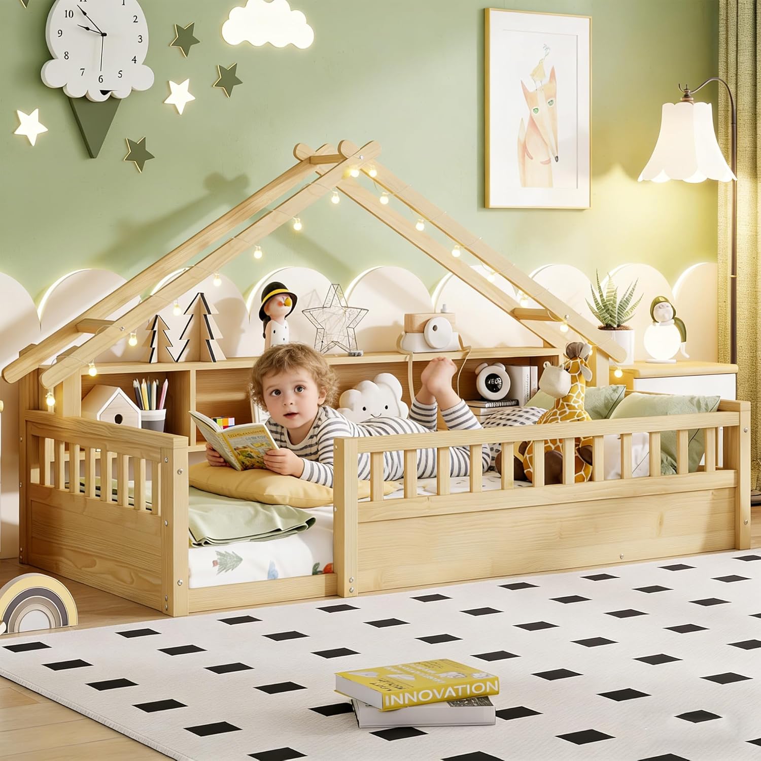 | Other Special Features of the Product | Guardrails, LED Lighting, No Box Spring Needed, Storage Bookshelves |