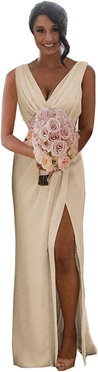 Item Description: This chiffon dress with V neck design is very elegant and eyes catching. The fabric is chiffon with light, soft, smooth and straight features, which is mostly used in women's fashionable special occasion dresses such as Bridesmaid Dresses,Wedding Dresses,Formal Dress,evening gowns,Prom Dress.Perfect choice for Bridesmaid Dress Custom Made: Dresses can be made according to your measurements with no more charges,the measurements we need is:1.Bust 2.Waist 3.Hips 4.Hollow(or Shoulder) to Floor 5.The height of your high heel shoes.after you place the order,pls send us your measurements and order id. Product Name: Fanciest Bridesmaid Dresses for Women,V Neck Chiffon Long Bridesmaid Dress for Wedding Occasion:Wedding Prom Evening Item Type:Bridesmaid Dress Waistline:Natural Decoration:Slit Fabric Type:Chiffon Back:Lace Up Back Train:No Dresses Length:Floor Length/Maxi/Long Silhouette:Mermaid Neckline:V Neck Sleeve Length:Sleeveless