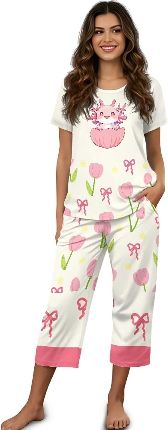 Oamsistay Women's Fashion Pajama Sets Short Sleeve Shirt S-4XL Floral Pajamas Set Soft PJ Loungewear Sleepwear Casual Printed Loungewear Combining casualness with practicality, this set is the ideal choice for warm evenings, lazy weekends, or relaxing days. With breathable fabrics, a chic aesthetic, and thoughtful details, it redefines casual loungewear. Sizes: S / M / L / XL / 2XL / 3XL / SXL Packags: Tops*1 & Long Pants *1 Features: Multi Occasions to Wear: Sleeping, Leisure, Home Wear, Dating, Street, Daily Wear, Walking and Walking the Dog and Vacation etc. Fashion Printed: The prints on the pajamas set are mainly daily themes such as florals, butterflies, hummingbirds, flowers, leaves, dragonflies, cats, dogs, etc.