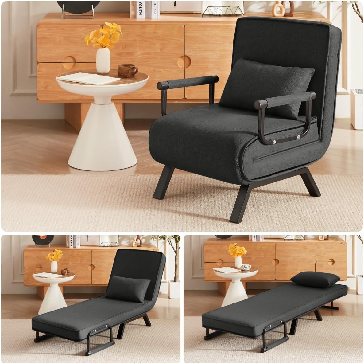 | Additional Features | 5 in 1 Stylish Folding Single Chair Bed, 31" Minimalist Convertible Sleeper Sofa, Mutifuctional Cozy Floor Chairs with 5-Position Adjustable Backrest&Pillow |