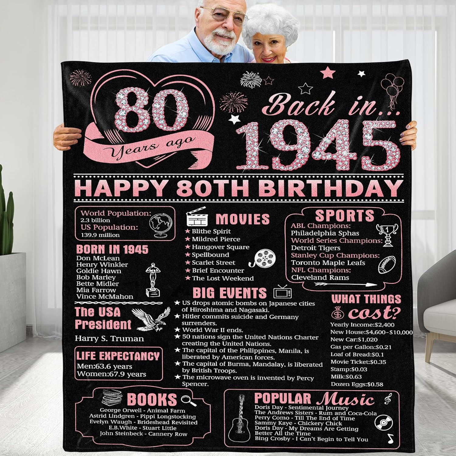 This classic 70th birthday Blanket is a perfect gift for mom, dad, wife, husband, aunts, uncles, sisters, brothers, coworkers, boss, teachers, and friends... our friends, family and co-workers will be delighted to receive this beautiful gift to display their special year facts.
