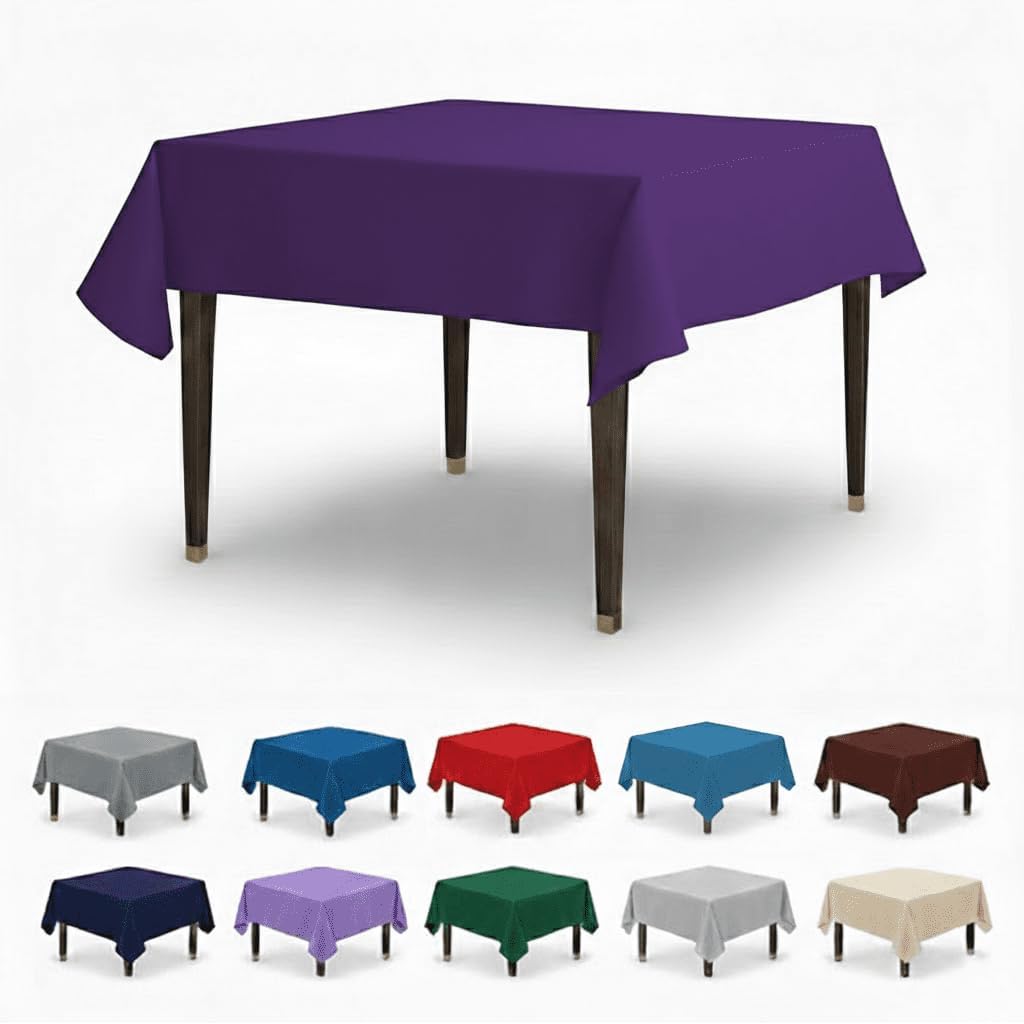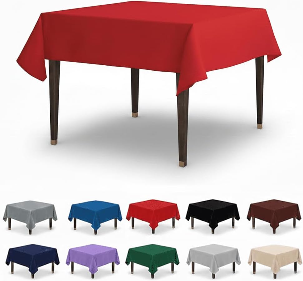 Presenting, yet another premium piece from our plush Premium Line of Polyester Tablecloths, with added advantage of wrinkle resistance and stain resistance. This 54 inches long and 54 inches wide Polyester tablecloth is made from premium quality polyester that not only looks great on your picnic and party tables, but also provides the comfort of time saving party preparation. Its high quality polyester lets you prepare your party tables in no time, simply open the package and spread it atop your dining tables, without spending time and effort in getting it ironed. The smooth, flawless polyester material not only enhances the grace of those drab party tables, but is also highly durable and reusable. Its stain resistant feature keeps it as good as new even after being used a number of times. Simply wipe the spills of food and beverages and use this splendid tablecloth with the same shine and elegance as the first time. For a perfectly exotic look and feel, pair these tablecloths with matching chair covers, table runners, table skirts and napkins to attain an ultimate coherent party ambiance, or create a stunning contrastive charm by adorning your tables with our satin, organza, rosette, or lace runners, napkins, and skirts, further augmented by our rhinestone or pearls accented tableware and glassware. Additional Information: Premium Polyester material tablecloths in 54"x54"size, square shaped. Tablecloths are a seamless, 1pc design. For care, tablecloths are machine washable. Use warm water wash, low temp dry. Tablecloths have hemmed edges for an exquisite look. Tablecloths are stain and wrinkle resistant. Ideal for parties, celebrations, or even home use. Thickness: 220gsm (grams per square meter) The length the tablecloth will hang on your table will depend on the size/height of your table. Please use our size chart to help you determine the tablecloth size you need.