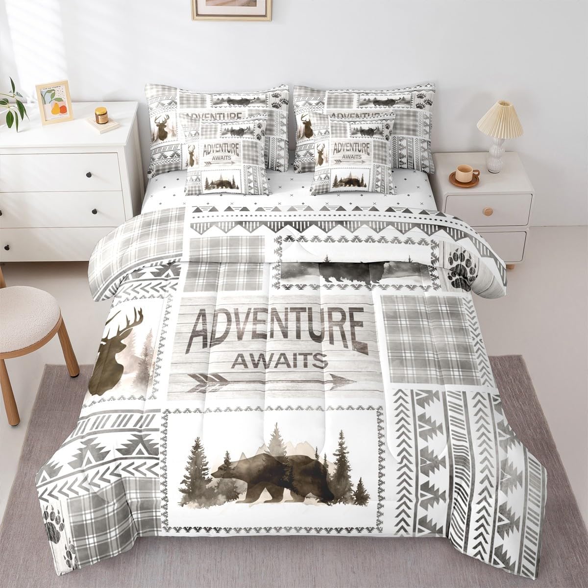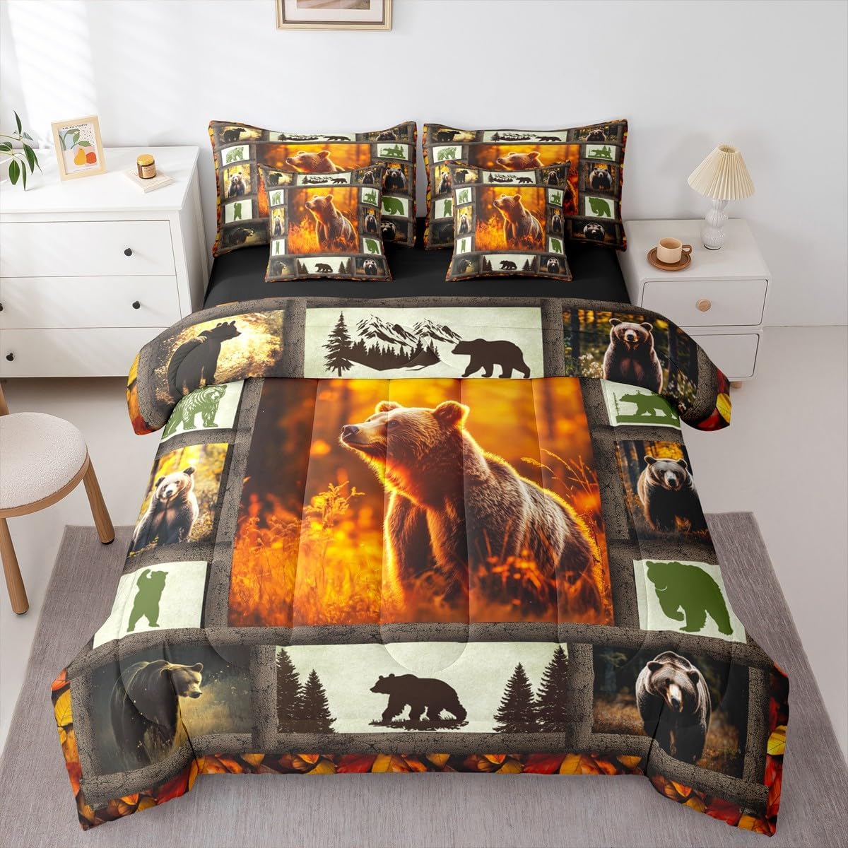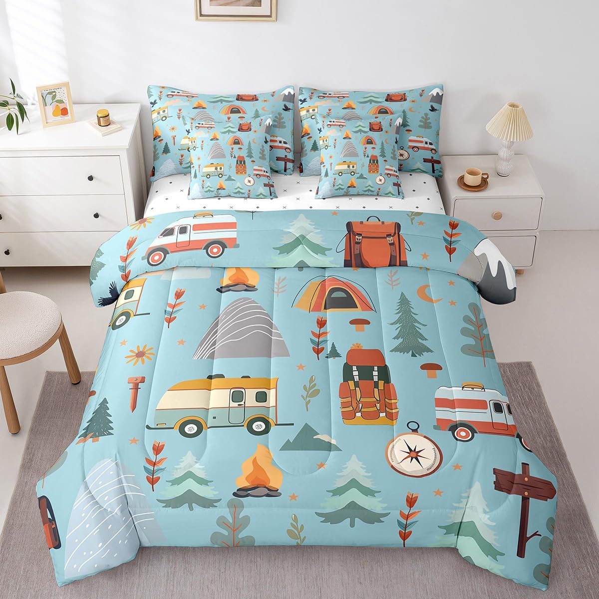 Why choose us Everyone has their own preferences; we develop different styles and different designs to suit the hobbies and aesthetics of different people; we look forward to bringing more joy and fun into your life; special design for special you; it's not just a simple home product, it's a way of life Brighten up your bedroom with this bed linen set; this bright and colourful bedding set features vibrant colours and special print pattern; turn the reversible duvet set over for a new look against a modern geometric background Convenient to use due to polyester which is super soft and comfortable; this all year round bedding is designed to be lightweight and breathable for a good night's sleep; a practical product for homes, dormitories, hotels, guest rooms Twin bedding set includes 1 twin comforter: 68"x90", 1 fitted sheet: 39"x75"x16", 1 flat sheet: 66"x96", 2 Pillowcases: 20"x30", 2 square pillow covers: 18"x18", perfect for a twin size bed. Full bedding set includes 1 full comforter: 79"x90", 1 fitted sheet: 54"x75"x16", 1 flat sheet: 81"x96", 2 Pillowcases: 20"x30", 2 square pillow covers: 18"x18", perfect for a full size bed. Queen bedding set includes 1 queen comforter: 90"x90", 1 fitted sheet: 60"x80"x16", 1 flat sheet: 90"x102", 2 Pillowcases: 20"x30", 2 square pillow covers: 18"x18", perfect for a queen size bed. King bedding set includes 1 king comforter: 104"x90", 1 fitted sheet: 78"x80"x16", 1 flat sheet: 90"x106", 2 Pillowcases: 20"x36", 2 square pillow covers: 18"x18", perfect for a king size bed. In addition to this comforter set with sheets, there are curtains, area rugs, shower curtains, blankets and other furniture with the same design waiting for you to explore. Whether it is for birthday of your family or friends, relatives, or just for yourself, the item should be interesting and authentic.