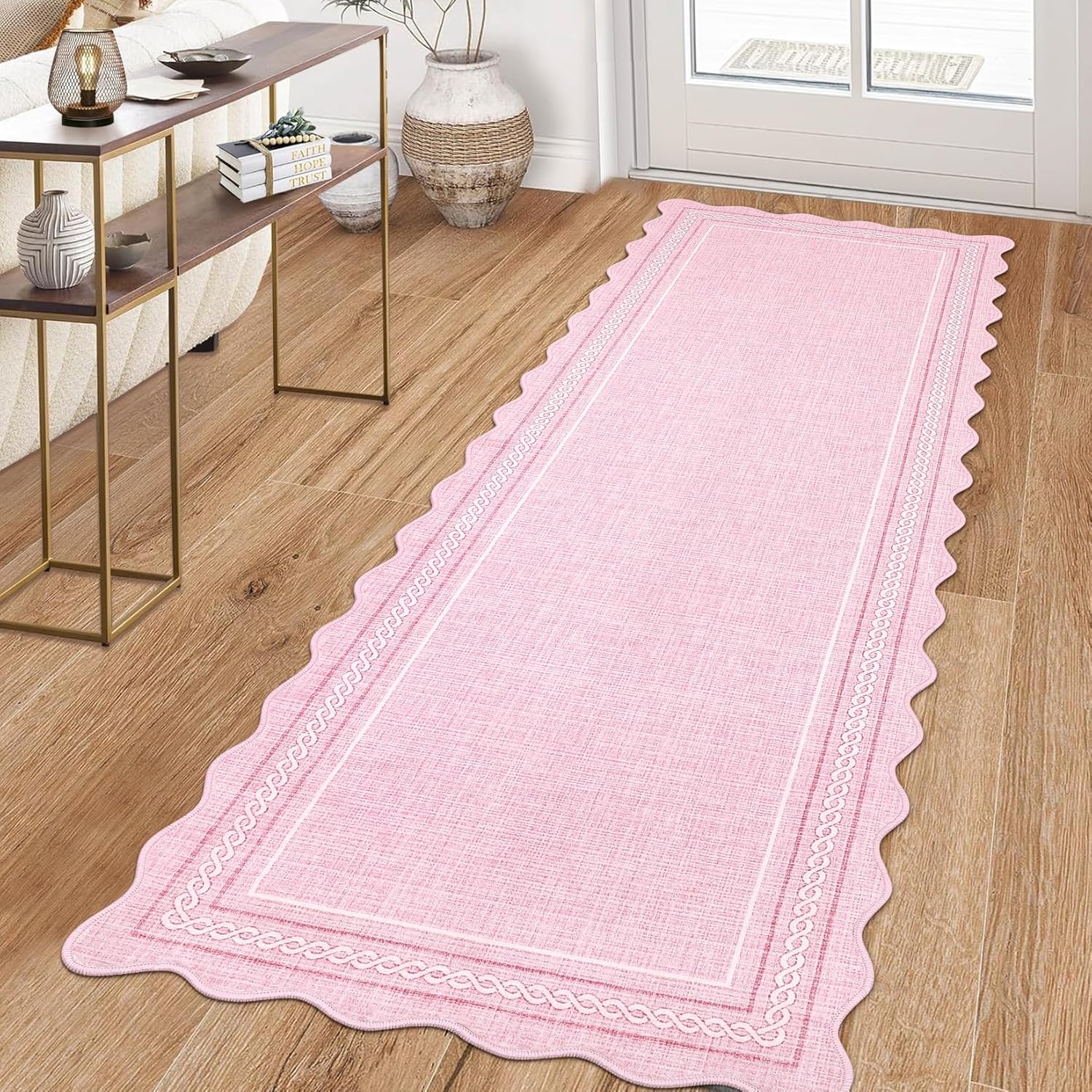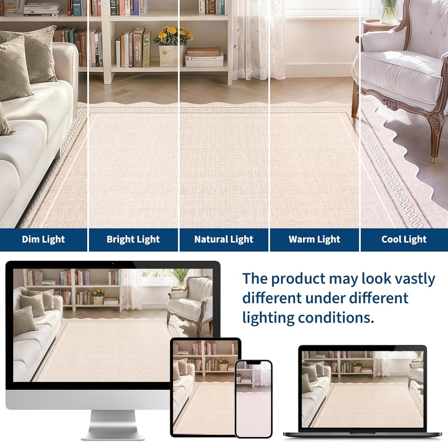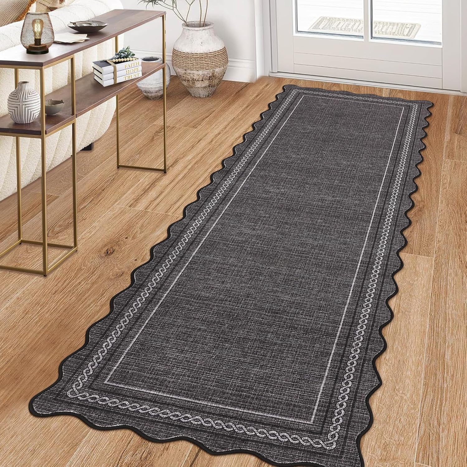 Washable Modern Scalloped Rug – Ultra-Soft, Non-Slip Low Pile Carpet for Living Room & BedroomTransform your home with the perfect blend of comfort and style—our ultra-soft, washable modern rug features a contemporary plaid pattern that brightens any room. The non-slip backing and stain-resistant, low pile design make it practical for busy families and ideal for high-traffic spaces. Ready to refresh your living room or add a touch of farmhouse charm to your bedroom? Where will you place this versatile accent rug first?Specification:Material: 100% PolyesterSize: 2x6 ft/5x7 ft/8x10 ft/9x12ft/10x14 ftApplication: Bedroom/Living Room/OfficeNote:When area rug arrives, there may be temporary creases, you can roll the washable rug in the opposite direction and lay it flat on the floor while applying pressure to the carpet, the creases will disappear completely in a few days.Measure your space and choose the appropriate size. Ensure that the carpet can cover the area you want and coordinate with the surrounding furniture.