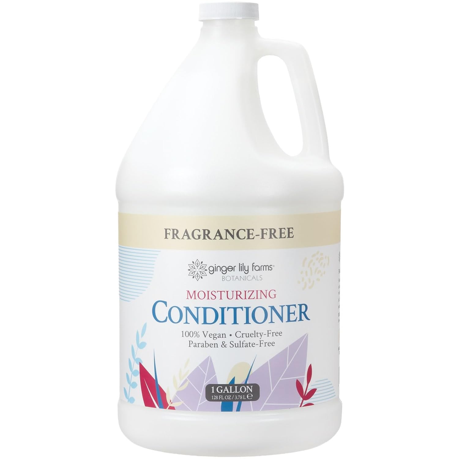 Ginger Lily Farms Botanicals Fragrance-Free Moisturizing Conditioner smooths, restores and revitalizes dry hair with lasting moisture for incredibly soft, shiny hair. Formulated with aloe, flaxseed and sunflower seed to provide weightless hydration to all hair types. Our moisturizing conditioner works with your hair’s natural oils to deeply penetrate every hair strand and improve the overall health, look and feel of your hair. Dry hair is instantly restored and revitalized. Fragrance-free for those with odor sensitivities or fragrance allergies. Ginger Lily Farms Botanical Hair Conditioner is formulated without parabens, sulfates, phosphates, gluten. The cruelty-free conditioner is 100% vegan and PETA certified. Recommended for commercial use in locker rooms, hair salons, and home use for refills.