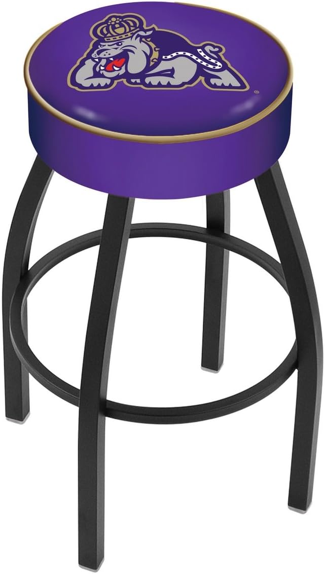 Made for the ultimate sports fan, you will be proud to show where your loyalty lies with this impressive Officially Licensed stool from the Holland Bar Stool Co. This contemporary L8B1 stool features a single-ring black wrinkle base with a 5" scooped cushion that conceals the swivel for an exceptionally clean look. A state of the art print process is used in applying specially formulated UV vinyl ink in numerous stages to produce a sharp, crisp, clear image to ensure a perfect reproduction of the logo. You won't find a higher quality logo stool on the market. The frame is made from commercial quality 16 gauge, 1 1/4 inch tube steel with solid Mig welded joints to strength and durability. The powder coated finish resists chips and scratches and ensures a long-lasting, rich appearance. The cushion seats are of the highest quality as well, utilizing a breathable, commercial grade vinyl. At the heart of the cushion is highly-dense, US made foam that provides maximum support and will not breakdown in a couple years. If you're going to finish your bar, game room, or man cave do it right- with a logo stool made in the USA by the Holland Bar Stool Co.