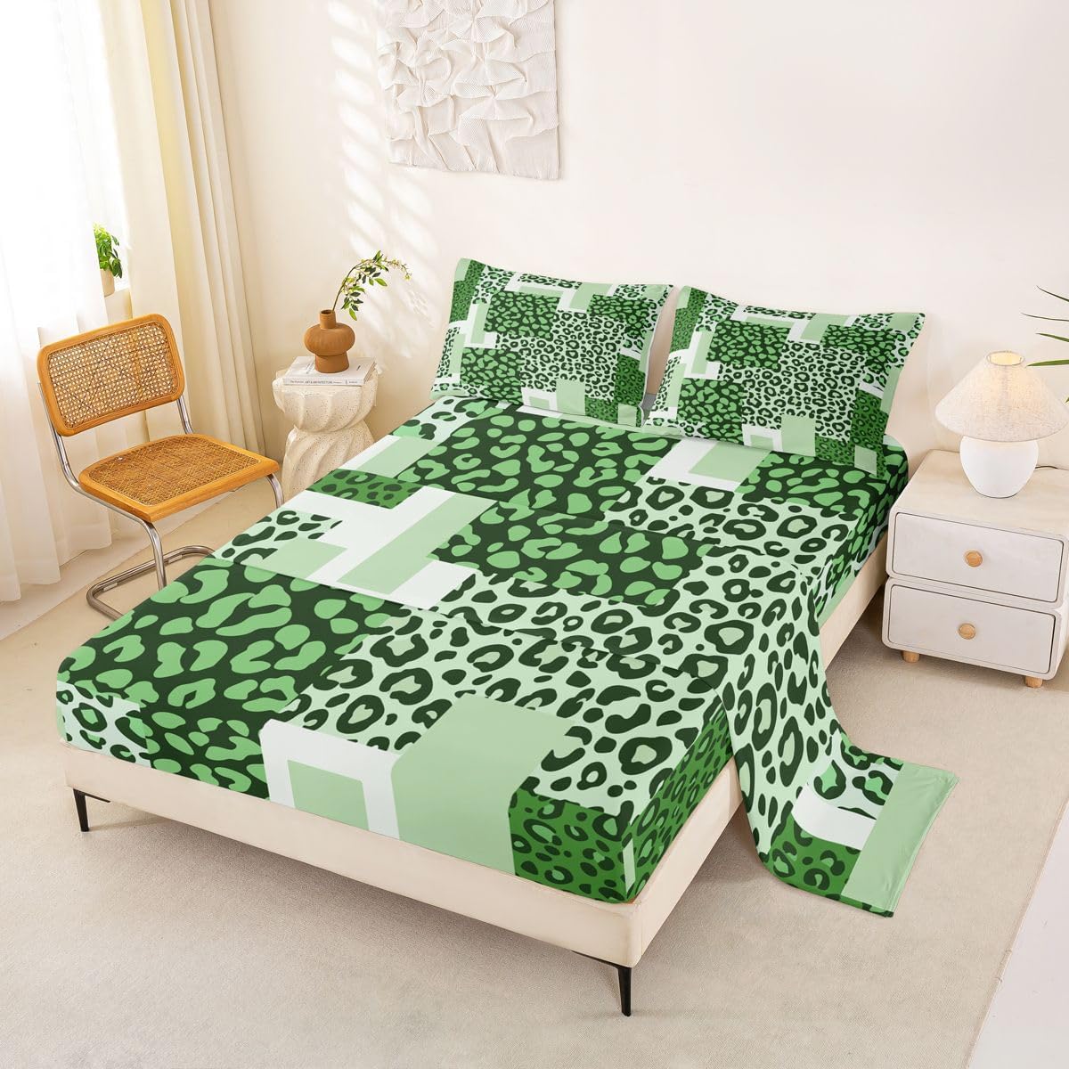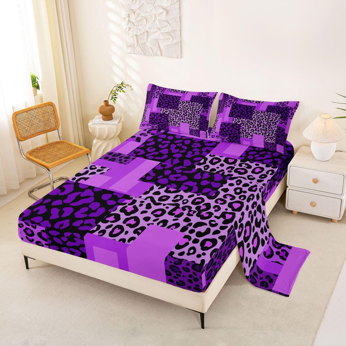 Our bed sheet is made of polyester fabric, lightweight and soft; stylish design is very suitable as room decoration for boys and girls; keep warm in winter and cool in summer; create a comfortable sleeping environment to make you fall asleep all night Range of size 1 twin fitted sheet 39 inch x 75 inch x 16 inch and 1 twin flat sheet 66 inch x 96 inch and 1 standard pillowcase 20 inch x 30 inch 1 full fitted sheet 54 inch x 75 inch x 16 inch and 1 full flat sheet 81 inch x 96 inch and 2 standard pillowcase 20 inch x 30 inch 1 queen fitted sheet 60 inch x 80 inch x 16 inch and 1 queen flat sheet 90 inch x 102 inch and 2 standard pillowcase 20 inch x 30 inch 1 king fitted sheet 78 inch x 80 inch x 16 inch and 1 king flat sheet 90 inch x 106 inch and 2 standard pillowcase 20 inch x 36 inch