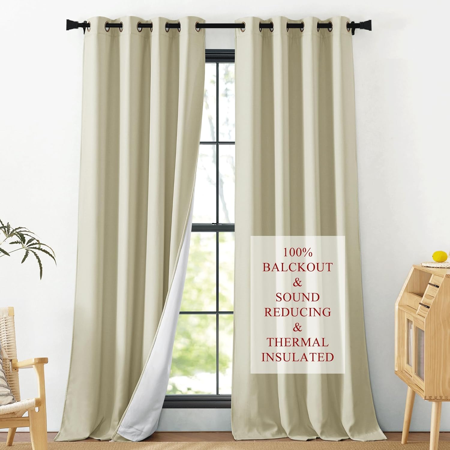 | Additional Features | 100% Blackout, 3 Layers, Soundproof, Thermal Insulated |