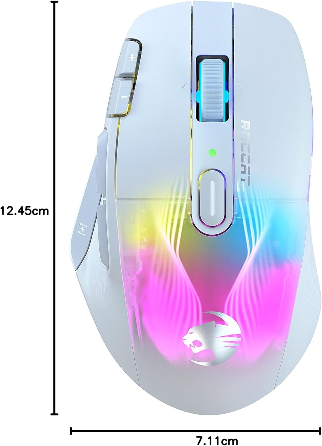The ROCCAT Kone XP Next-gen Customization Gaming Mouse utilizes the refined ergonomics of the iconic Kone shape. The translucent shell sets the stage for the Kone XP’s 22 LEDs and 8 light guides, creating an unprecedented and immersive lighting experience. The Kone XP boasts 15 buttons, and thanks to ROCCAT’s Easy-Shift[+] duplicator technology there are 29 possible button functions. Ideal for gamers who demand deep customization. The Krystal 4D Wheel not only adds to the number of inputs, but also enhances the experience, beautifully diffusing the RGB lighting.