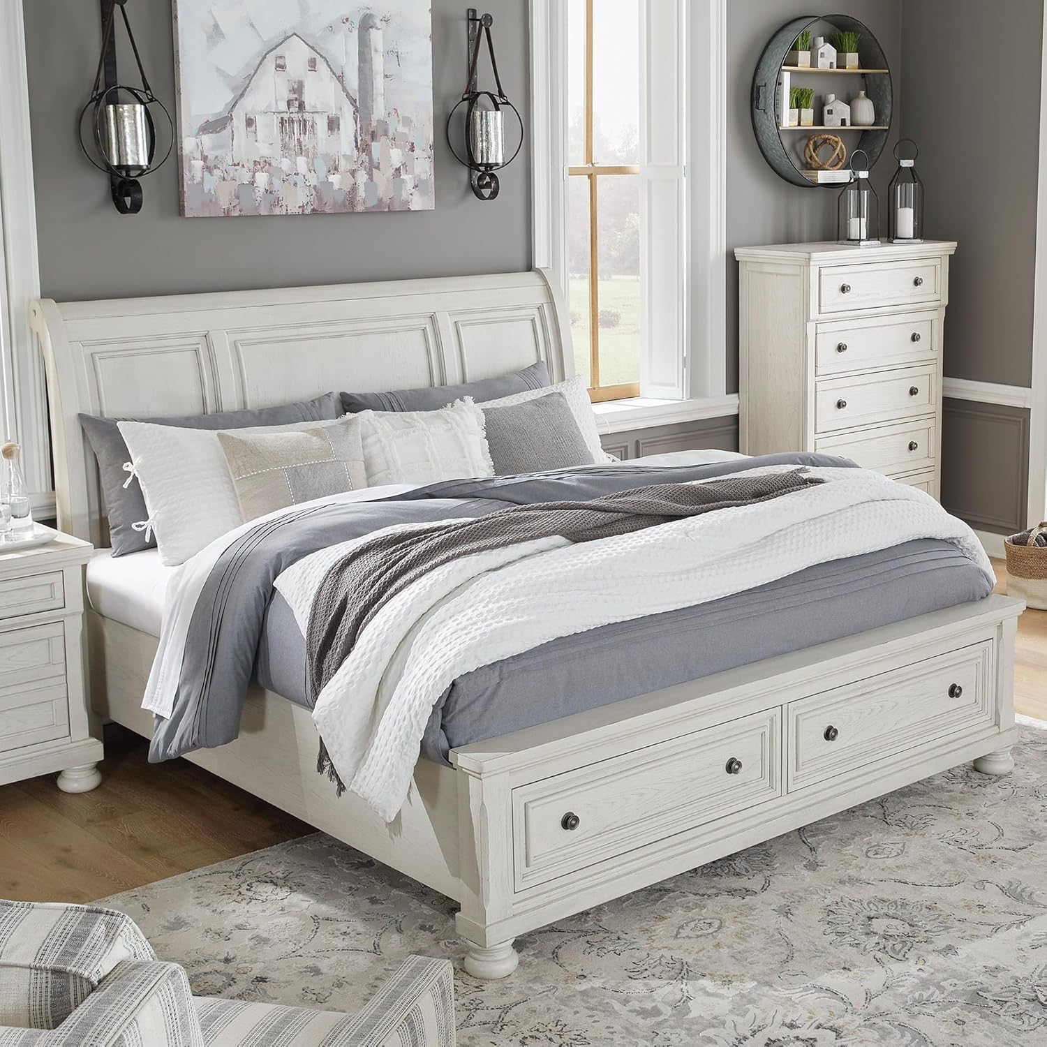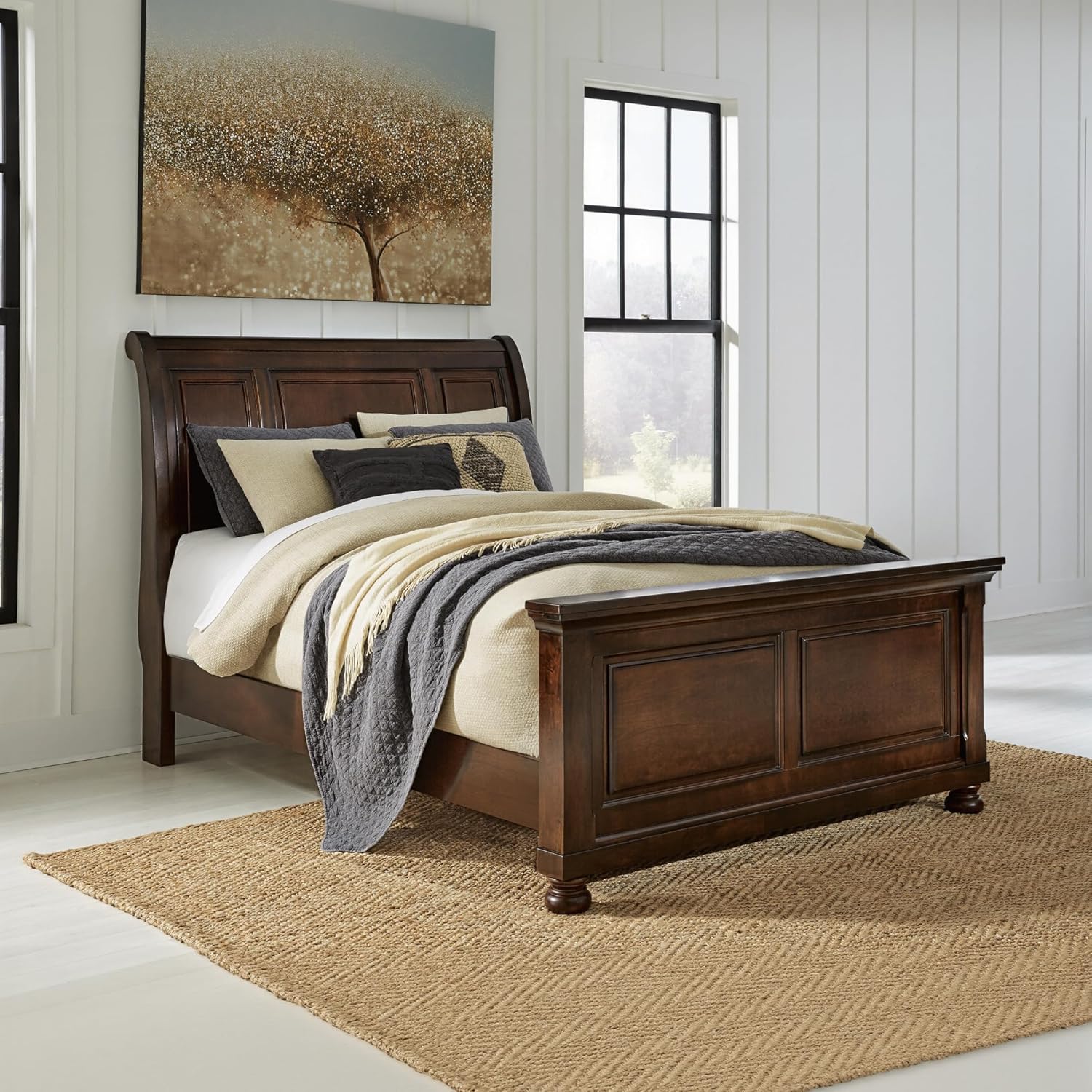 Those drawn to the warm feel of traditional interiors love how this panel headboard suits their style. Rustic finish is rich with character, while high headboard makes an impressive stance. Beveled panel framing reflects beauty in the details. When searching for bed frames, look no further than our wide selection and value. Give your mattress an instant upgrade with showstopping headboards and sleek frames that even have storage options. From neutral shades to bold lighting, our bed frames pack a punch of character that’s sure to instantly elevate your room into a suite. And we go the extra mile to package, protect and deliver your purchase in a timely manner.