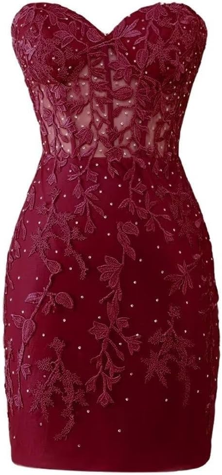 | Embellishment Feature | Lace Appliques Homecoming Dresses, Strapless Tight Prom Dress, Sweetheart Homecoming Dresses, beaded prom dress short |