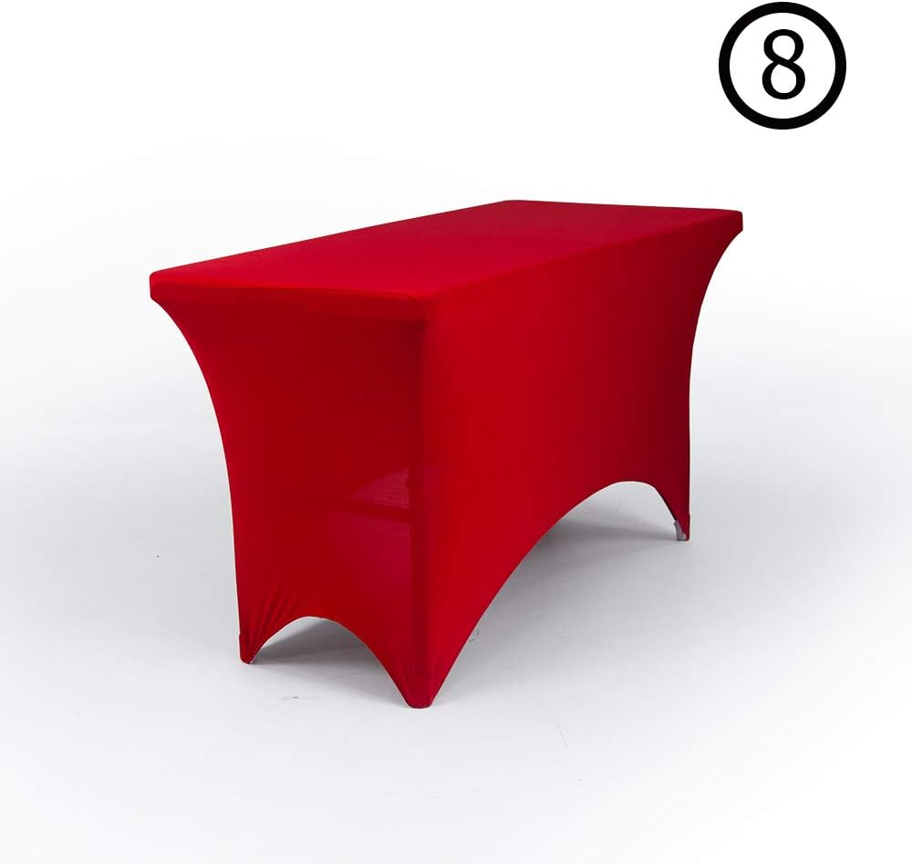 Premium stretch tablecloths from VispronetOur table throws are available in multiple quantities and colors. We currently carry 4 different bold color options: Red, White, Black, and Blue. Each table cover is made with spandex and polyester fabric with double-folded hemmed sides for additional durability. The material is stretchy, so wrinkles are kept to a minimum.Care and cleaning: Wash in household washing machines on the cold water setting of 105°F (40°C) with the addition of mild, color-safe (without bleach) washing detergent and a color catcher. Remove from washer, place on table and let the product air dry to prevent shrinking.